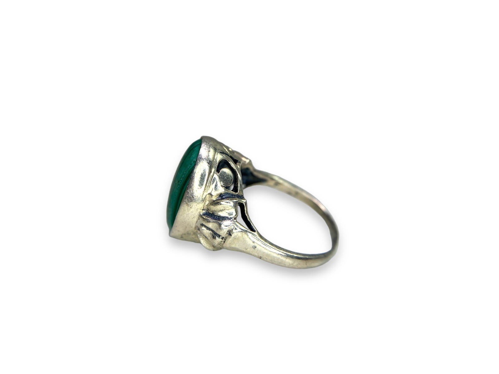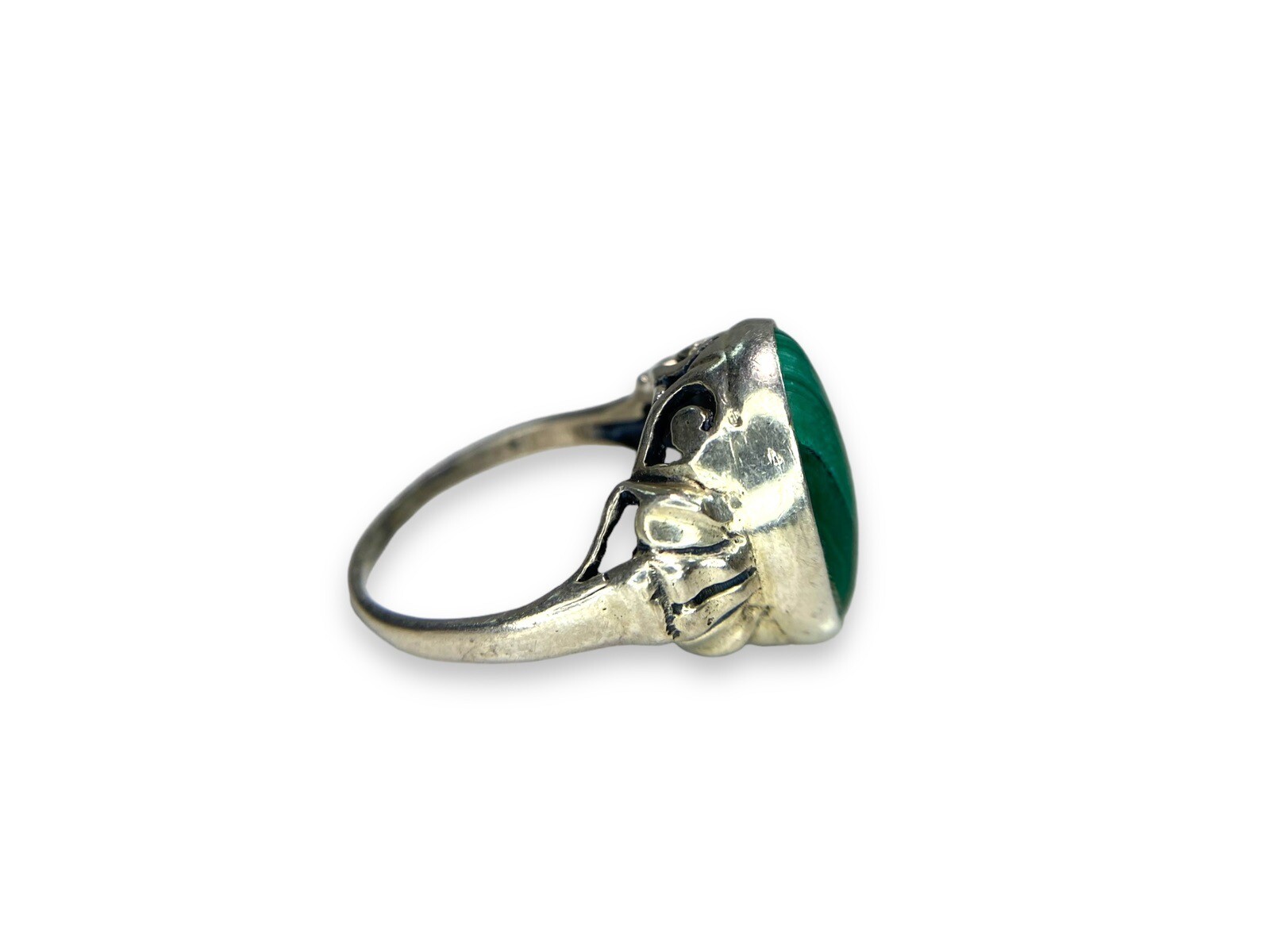 как выглядит Vintage Sterling Silver Bezel Set Green Malachite Ring Size 6.5 фото
