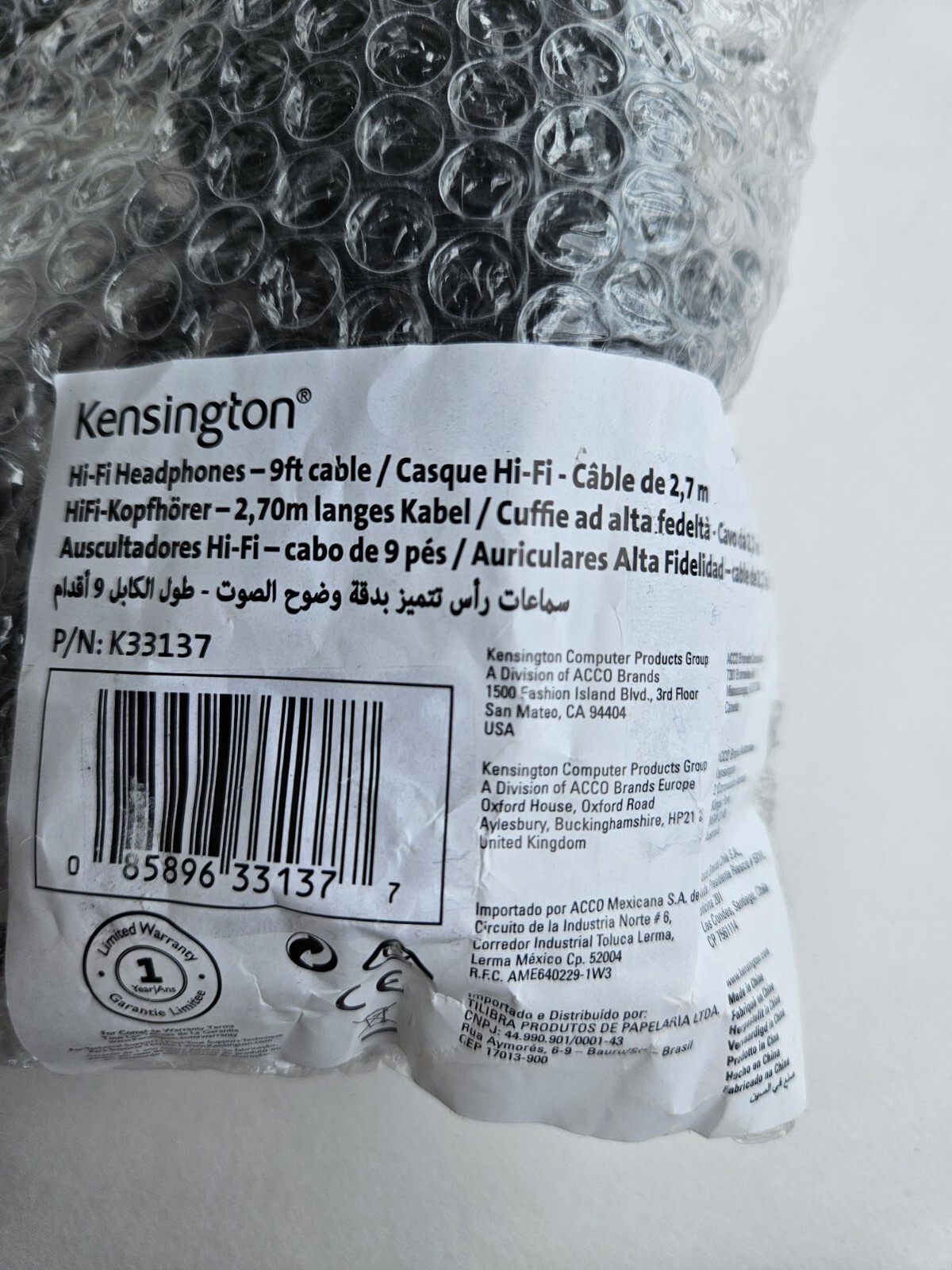 KENSINGTON K33137 900-0931-01 HI-FI HEADPHONES, 9FT CABLE, ON-EAR, BLACK