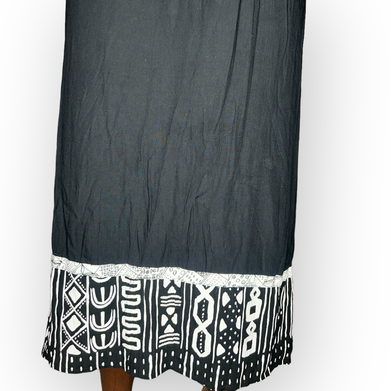 как выглядит Vintage Black Skirt with Black White Tribal Print Boarder фото