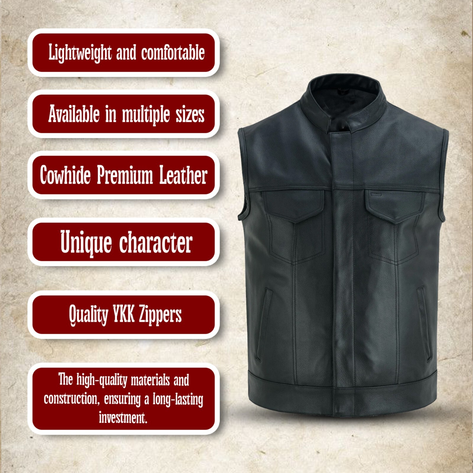 Motorcycle Anarchy Club Vest Men's Biker Black Leather Concealed Carry