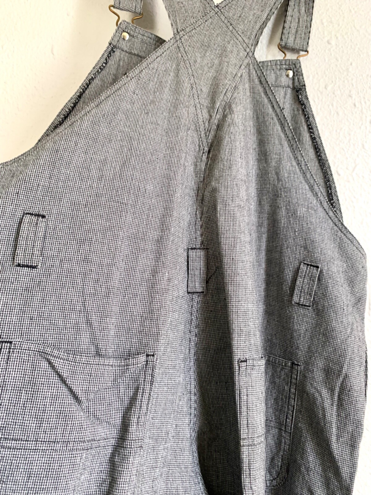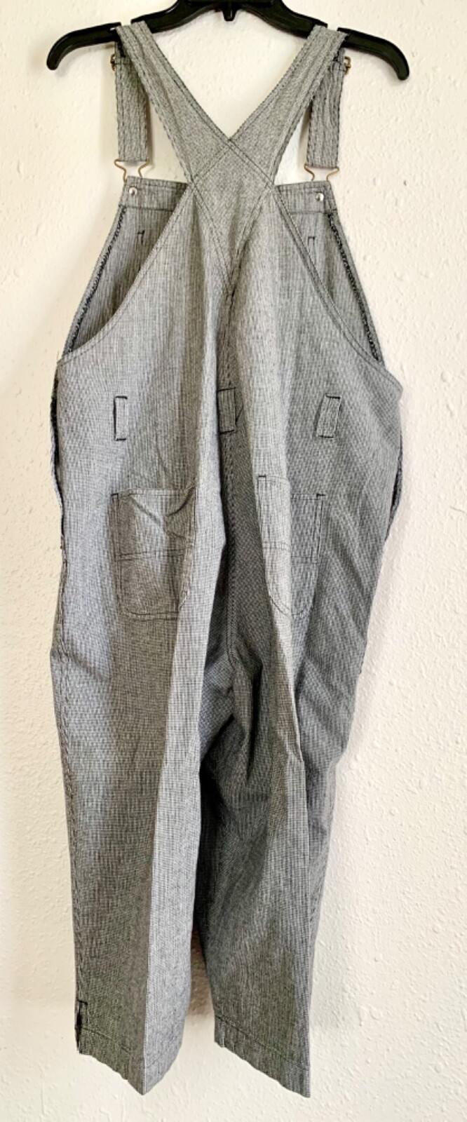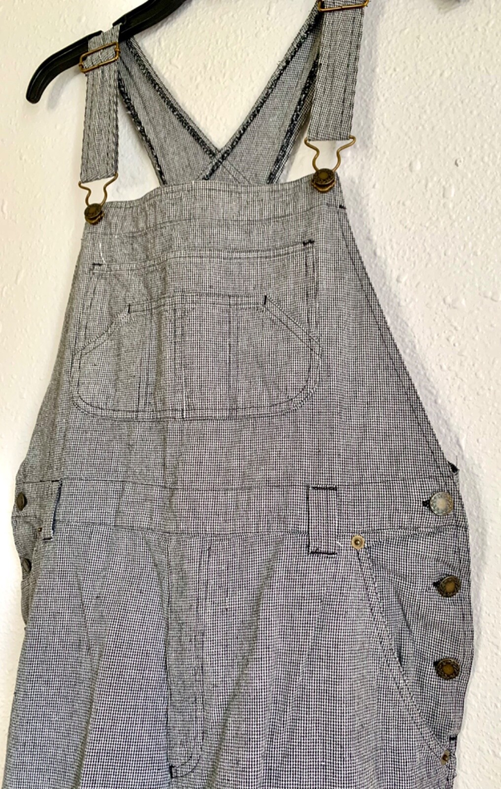 90's VTG BIB OVERALLS Cotton 34x17 Houndstooth black cropped ska grunge garden