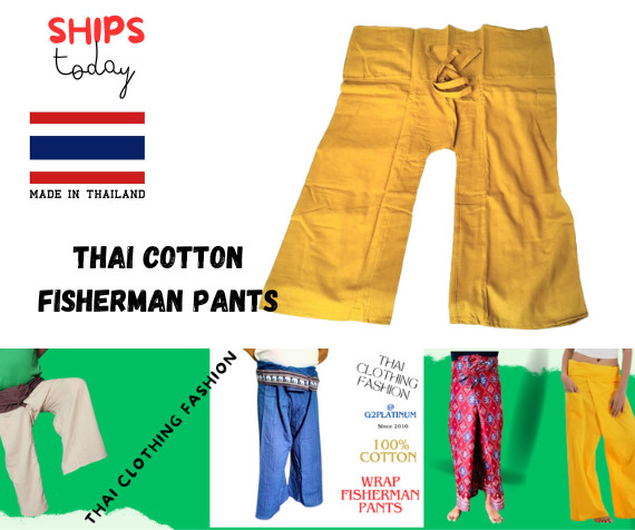 Thai fisherman pants unisex trousers golden tan wrap pants 100 cotton gift