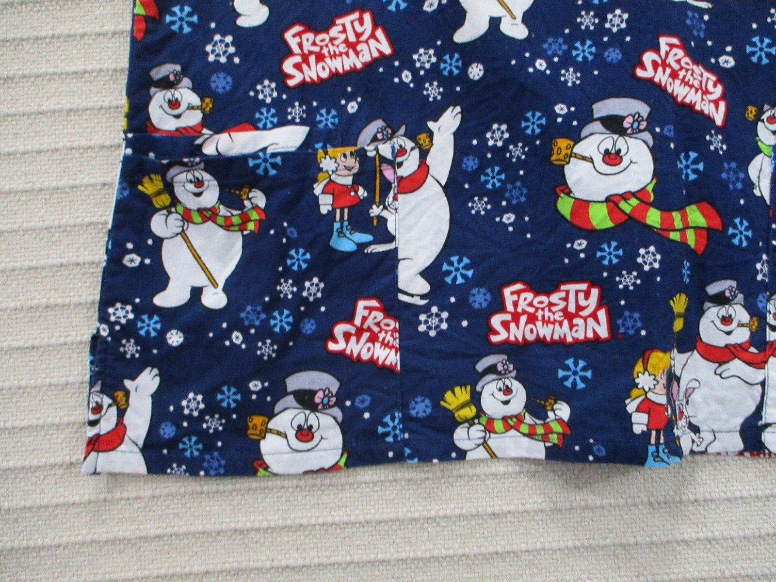 Frosty Snowman Women Scrub Shirt Large Blue Graphic Short Sleeve Neck Pocket