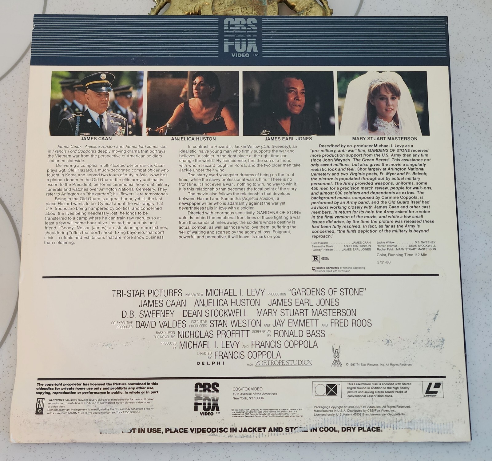 как выглядит Gardens of Stone James Caan Anjelica Huston James Earl Jones Laserdisc фото