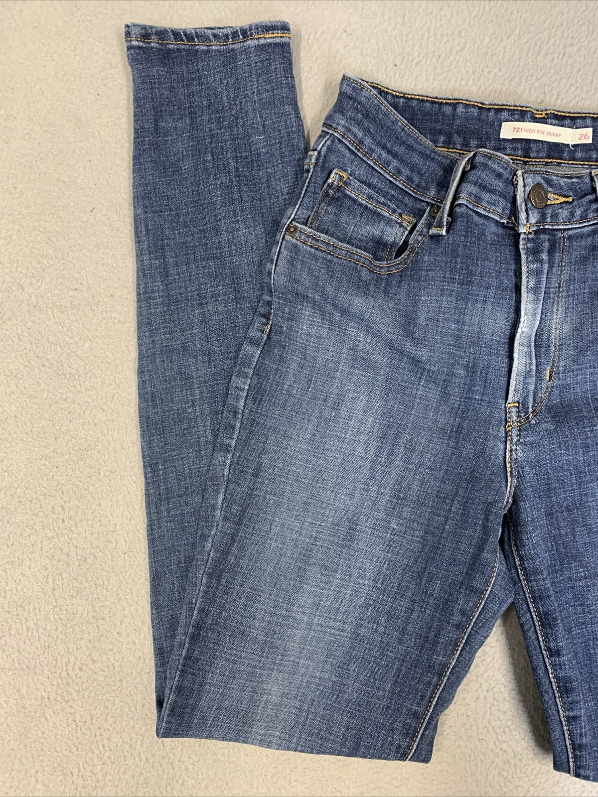 как выглядит Levis 721 Jeans Women s Size 26 High Rise Skinny Fit Blue Stretch Denim фото