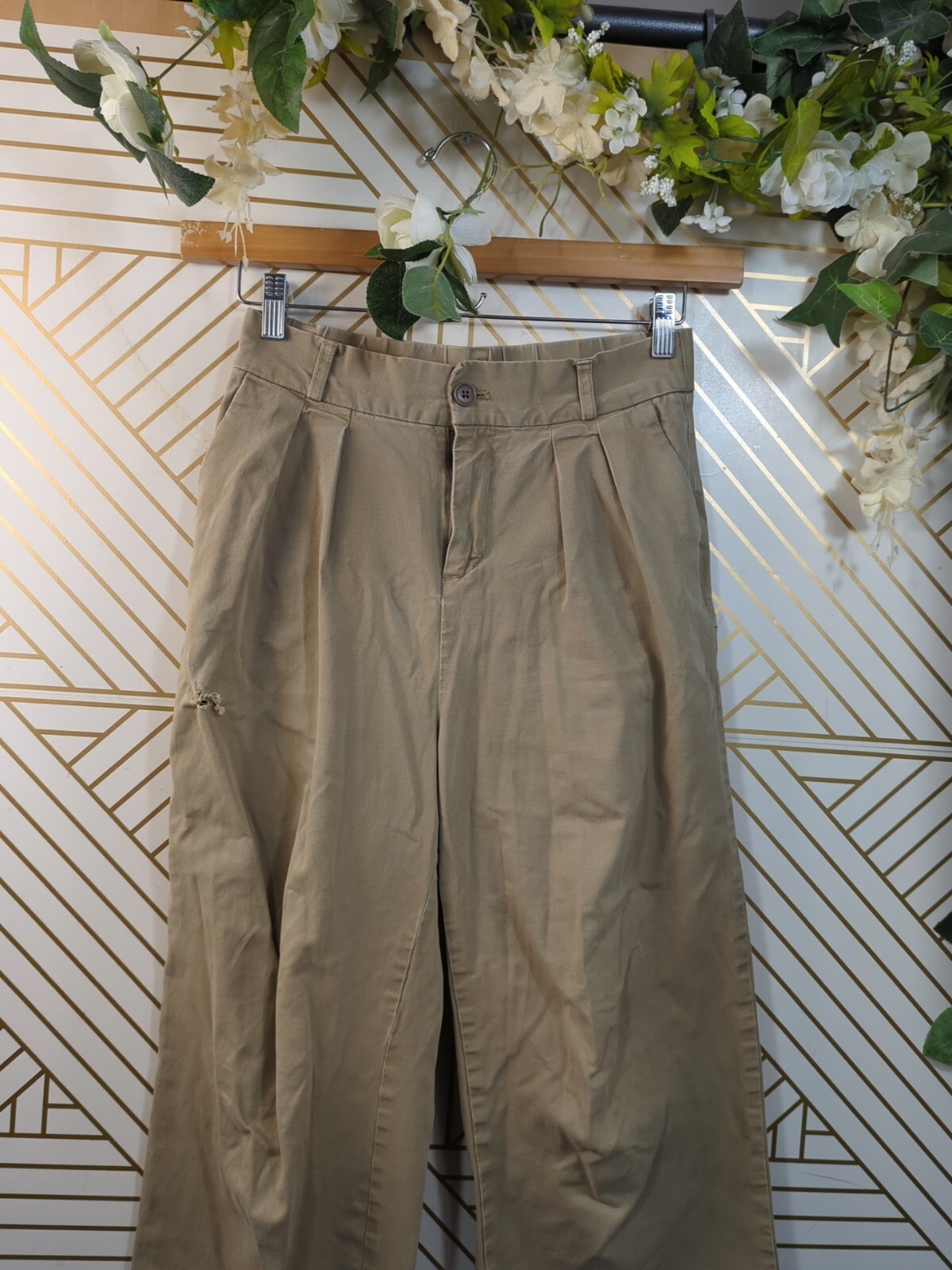 как выглядит MUJI Womens Tan Wide Leg Cropped Trousers Cottn Size Small READ фото