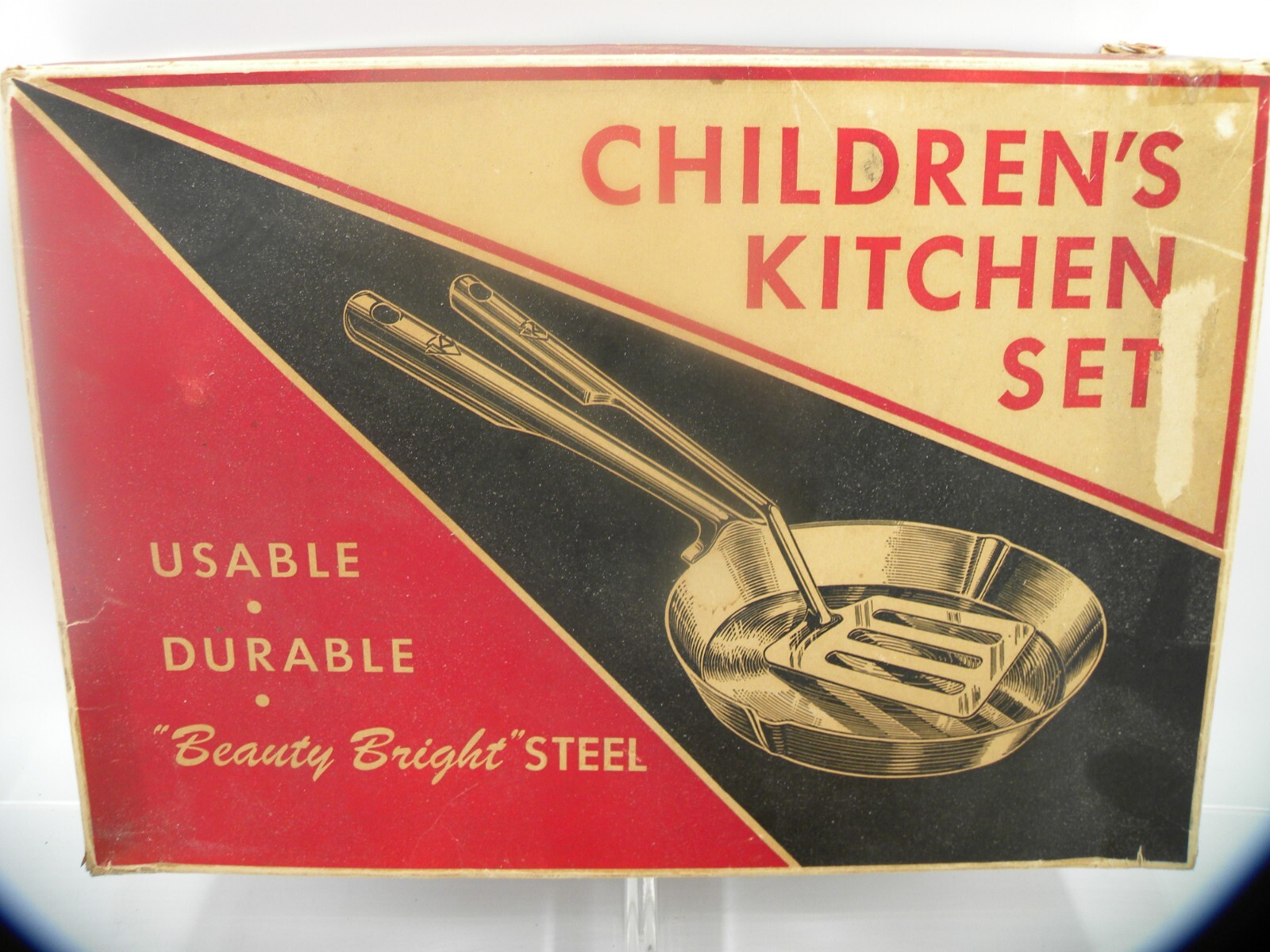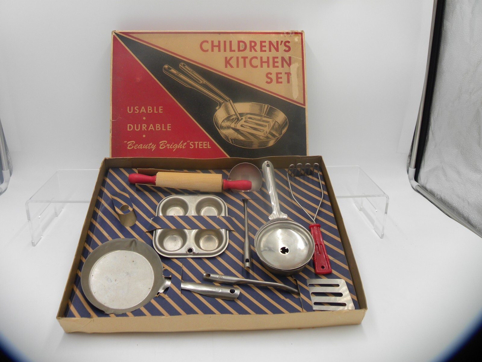 Usable Toy Kitchen Metal Set Krest Inc Detroit 23 Mich 1950s