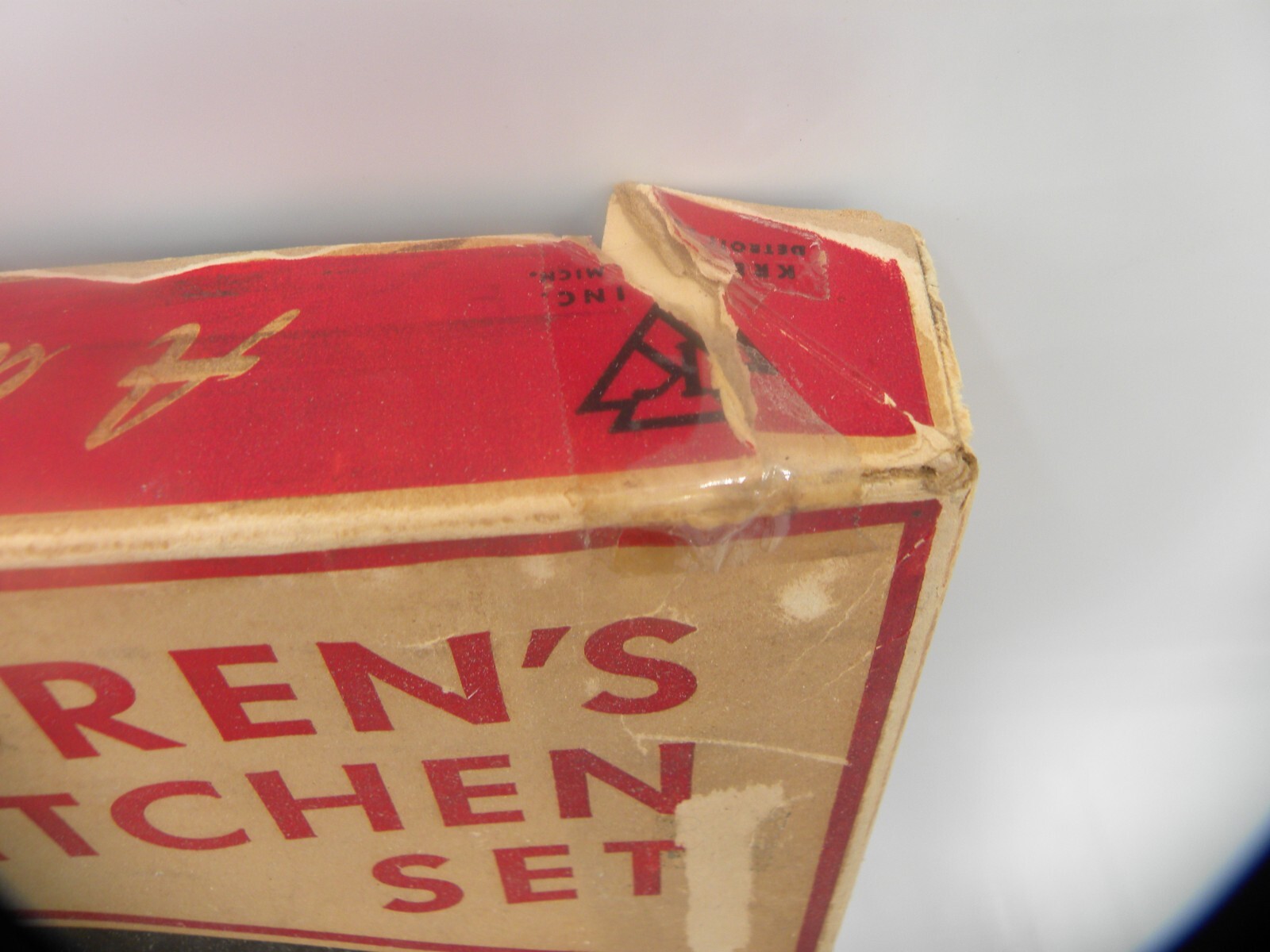 как выглядит Usable Toy Kitchen Metal Set Krest Inc Detroit 23 Mich 1950s фото