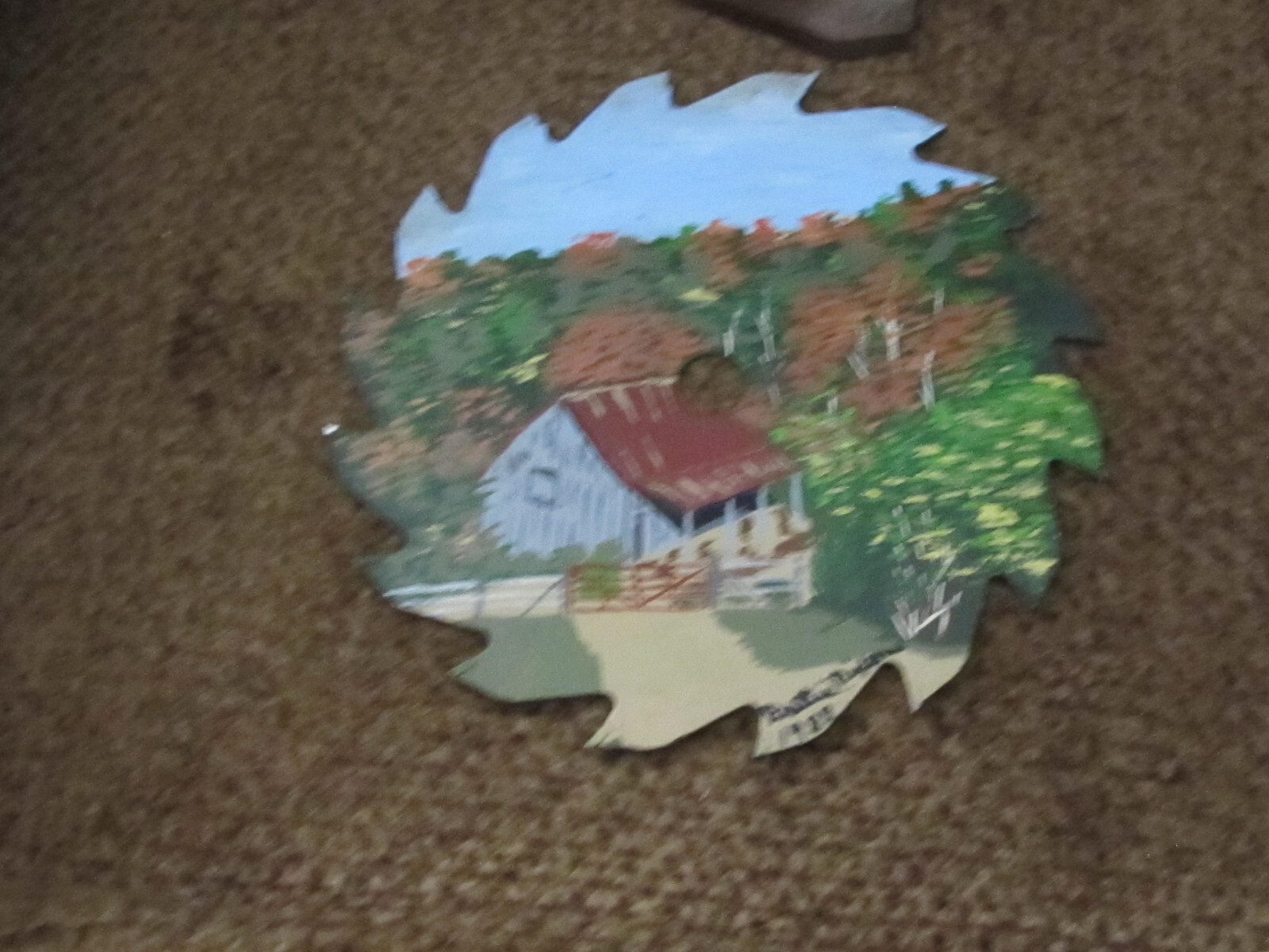 как выглядит Hand Painted 7 Circular Saw Blade Artist Signed Country Cabin фото