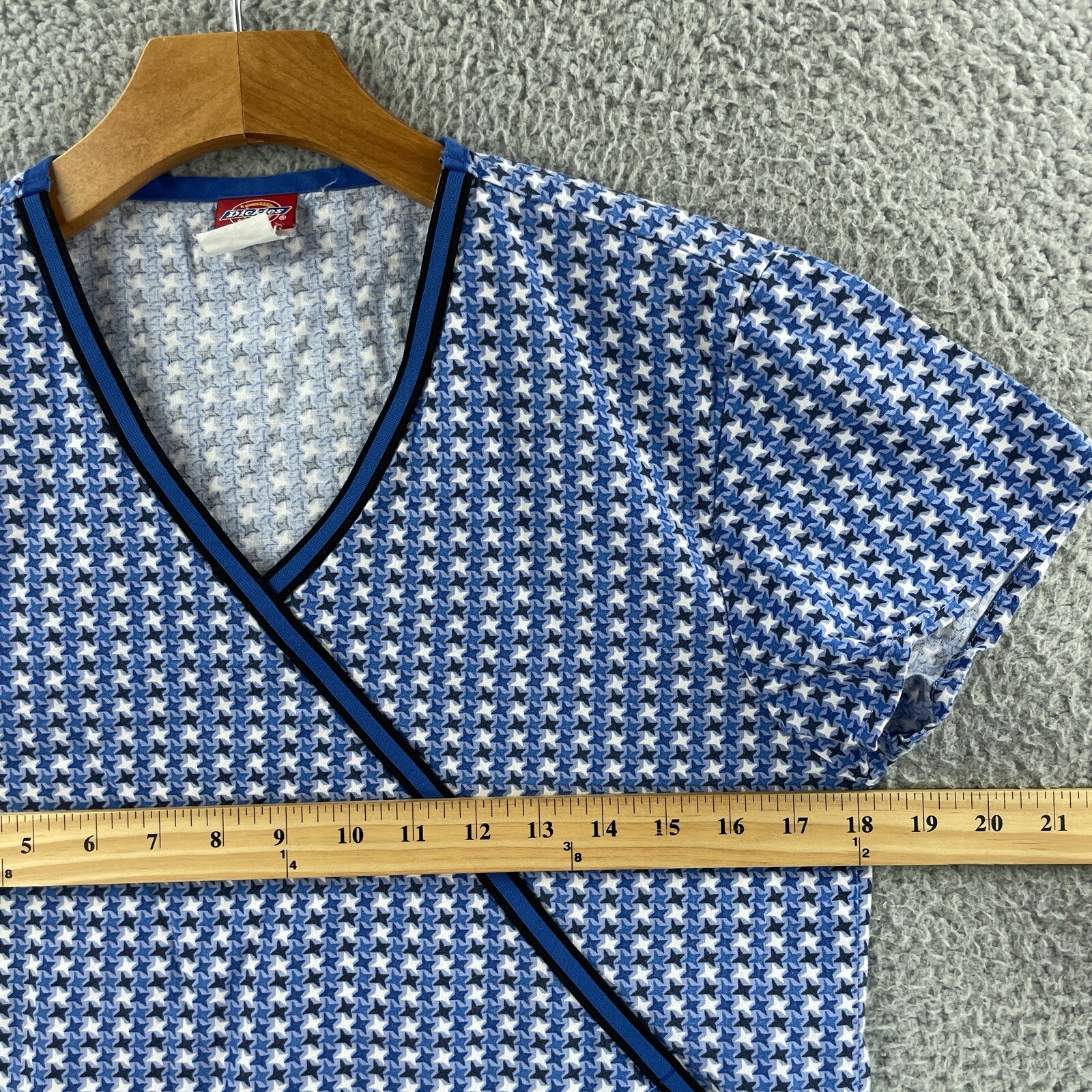 как выглядит Dickies Scrub Top Womens XS Blue Stars Print Nursing Medical Pockets Shirt фото
