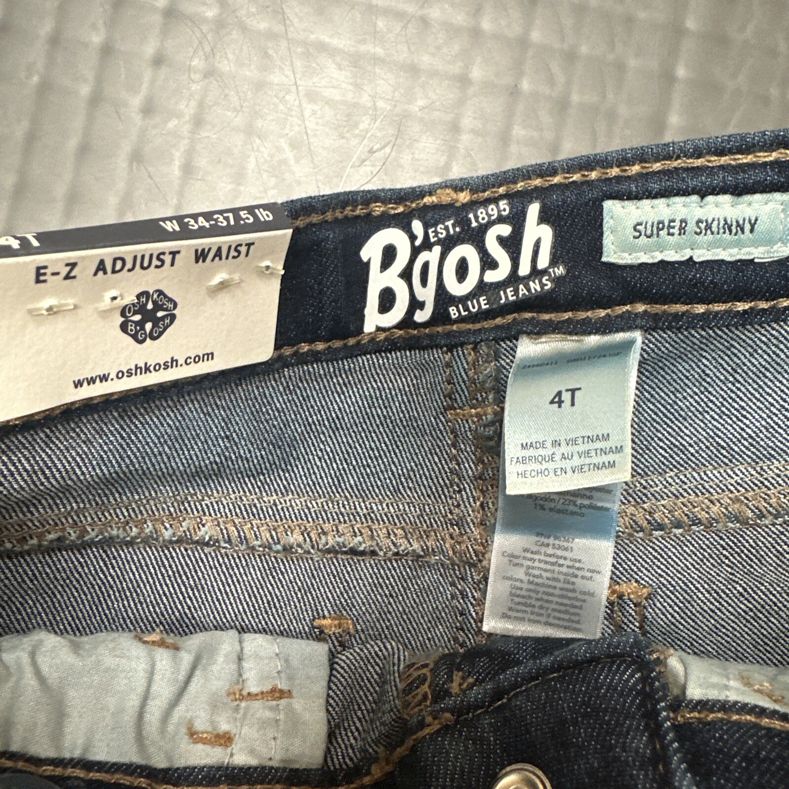 OshKosh B'gosh Super Skinny Blue Jeans Adjustable Waist Girl's Size 4T NWT