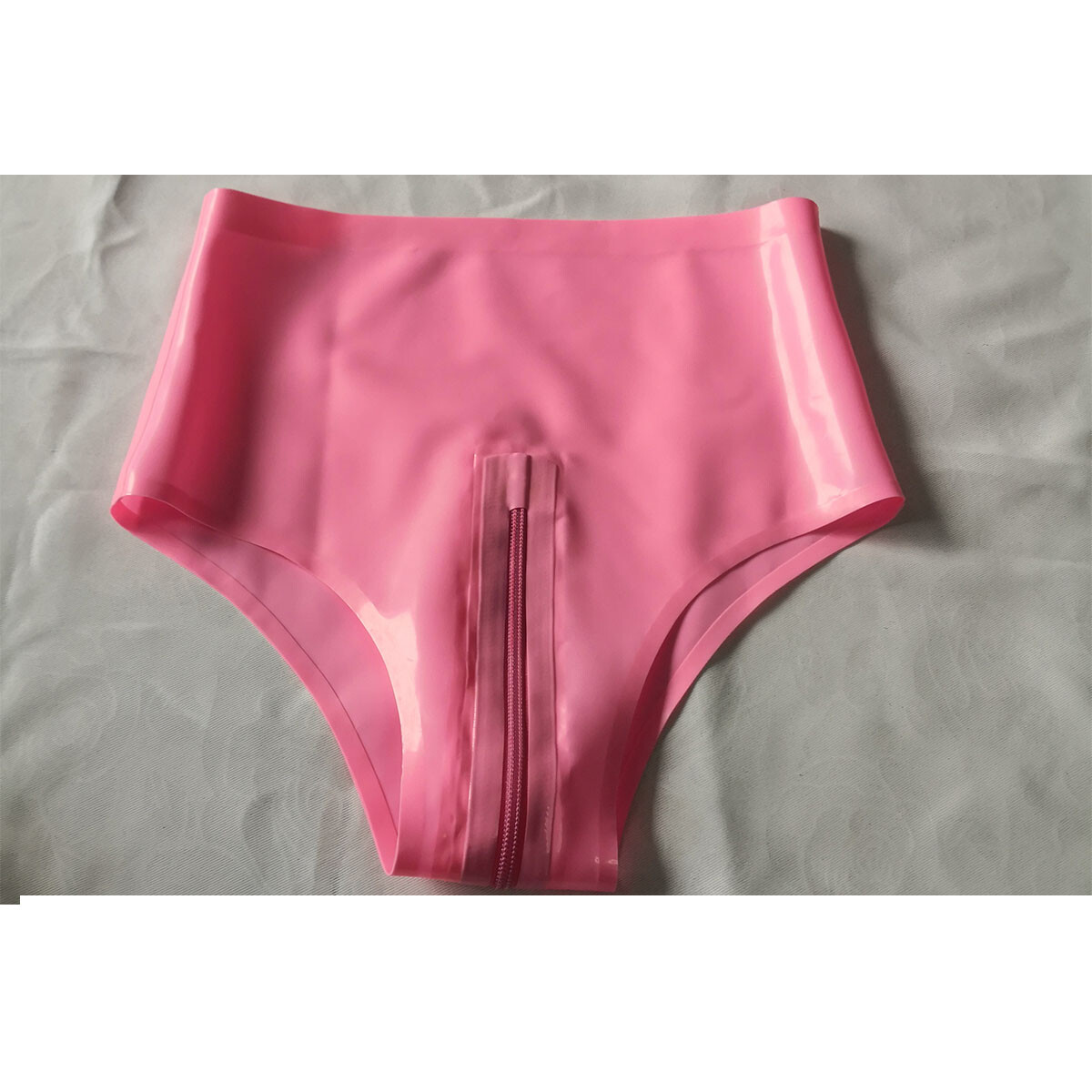 Women Pink Latex Panties with Crotch Zip Rubber Shorts Underwear Handmade