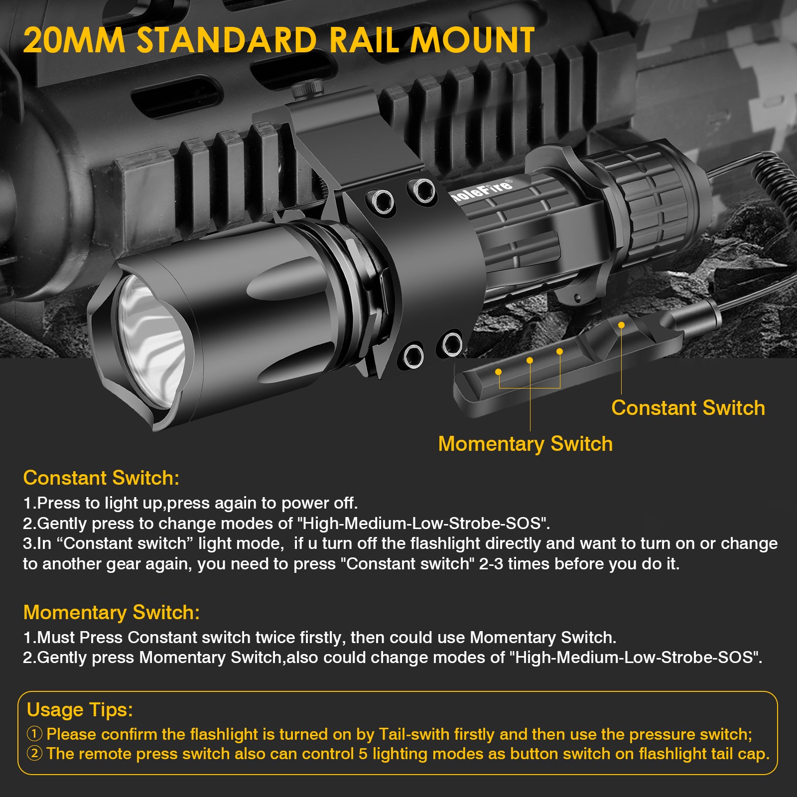 900000LMS Tactical LED Gun Flashlight Rail Mount Rechargeable Light For Hunting