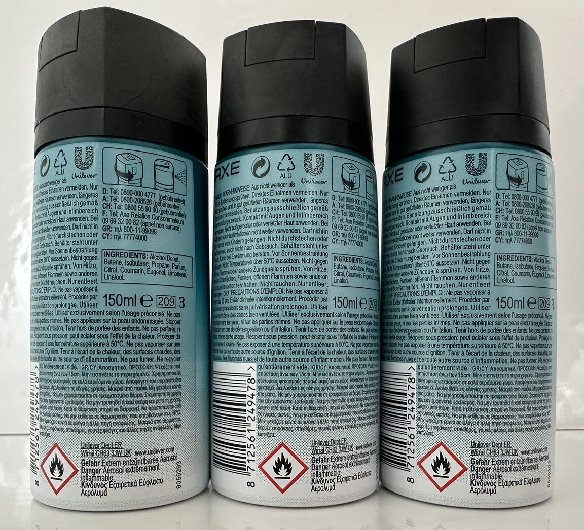 3 X AXE Deep Space Mens Body Spray Deodorant 150ml