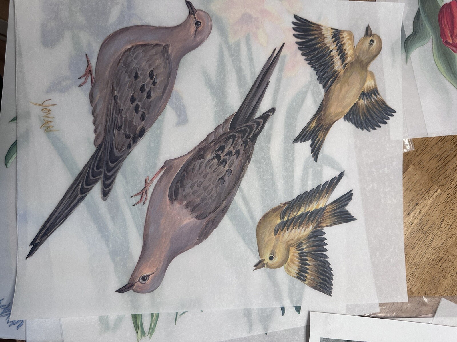 как выглядит Tatouage Dry Rub Transfer Wall Sticker Garden Scene Bird Bath flowers HUGE SET фото