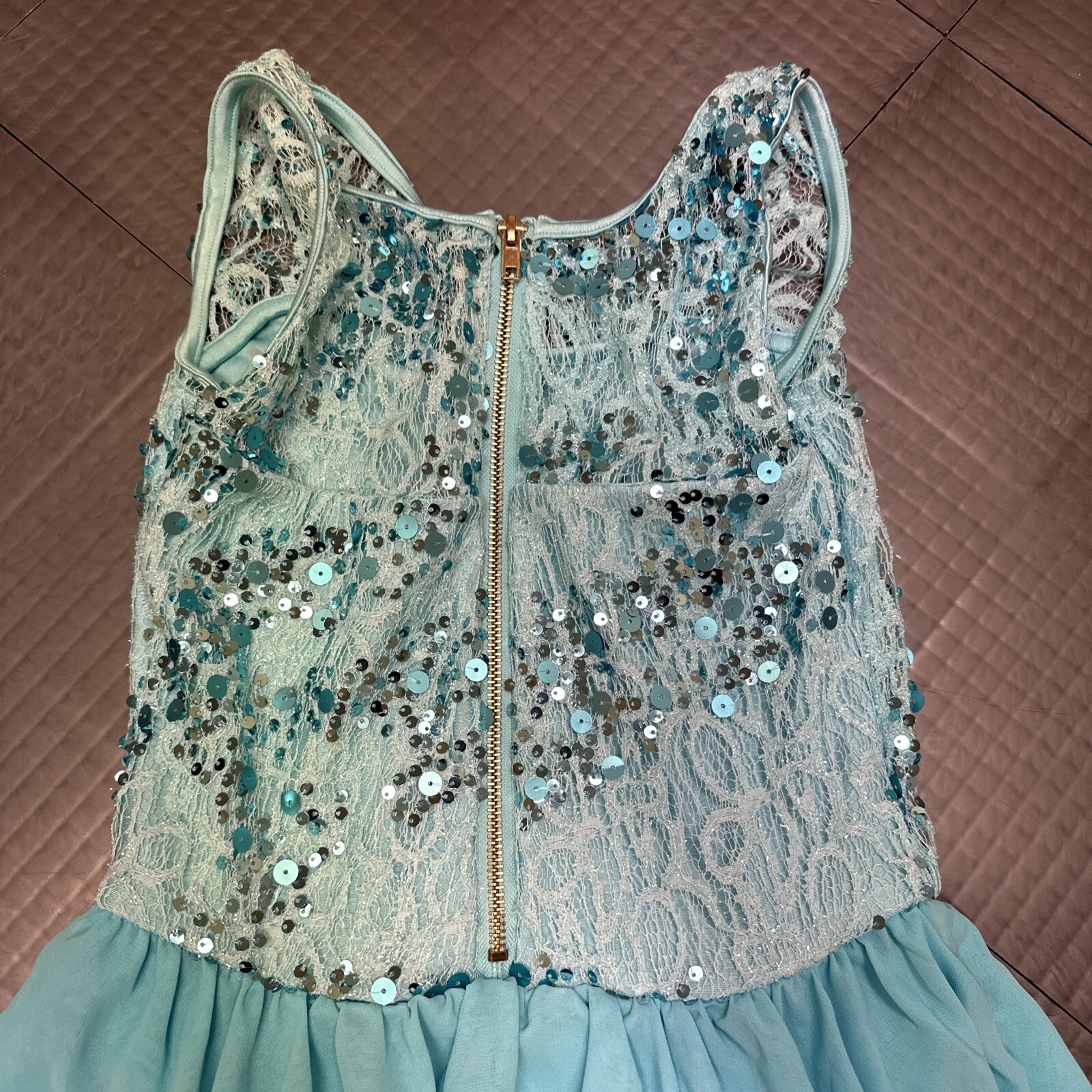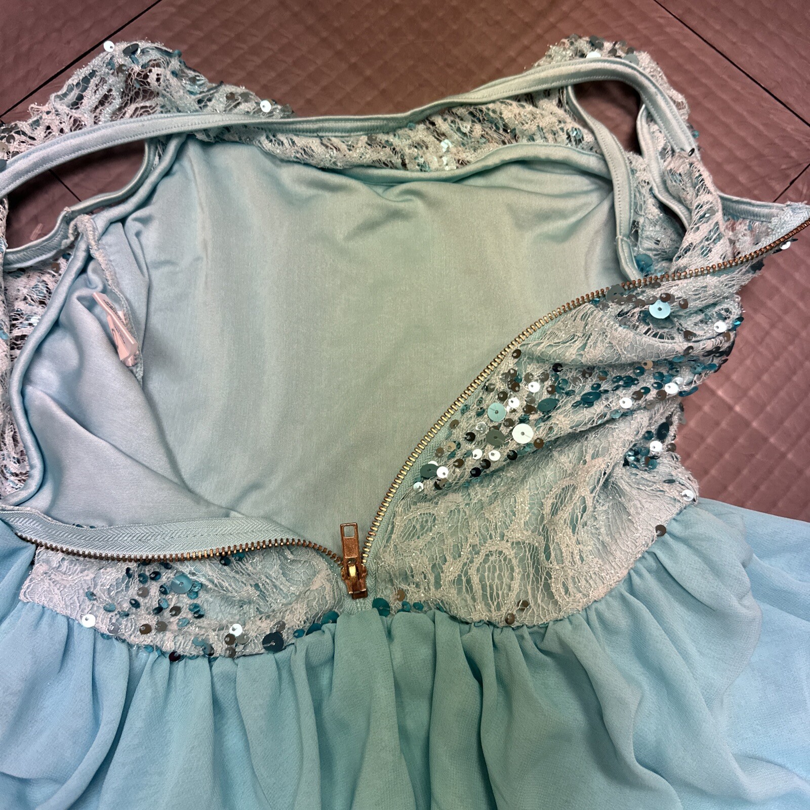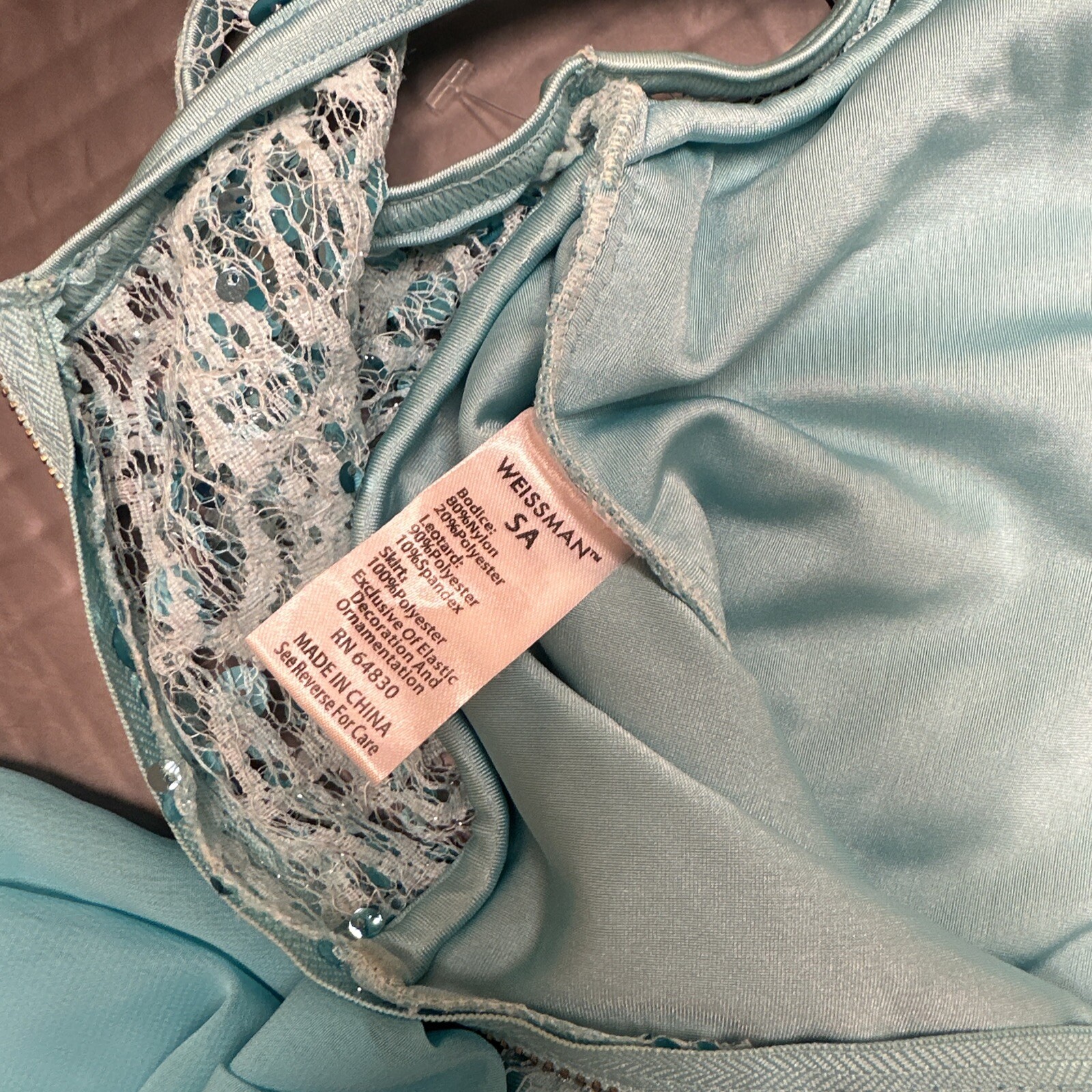 как выглядит WEISSMAN Dance ivory Aqua blue lace sequin Costume Listen 6883 Adult SA фото