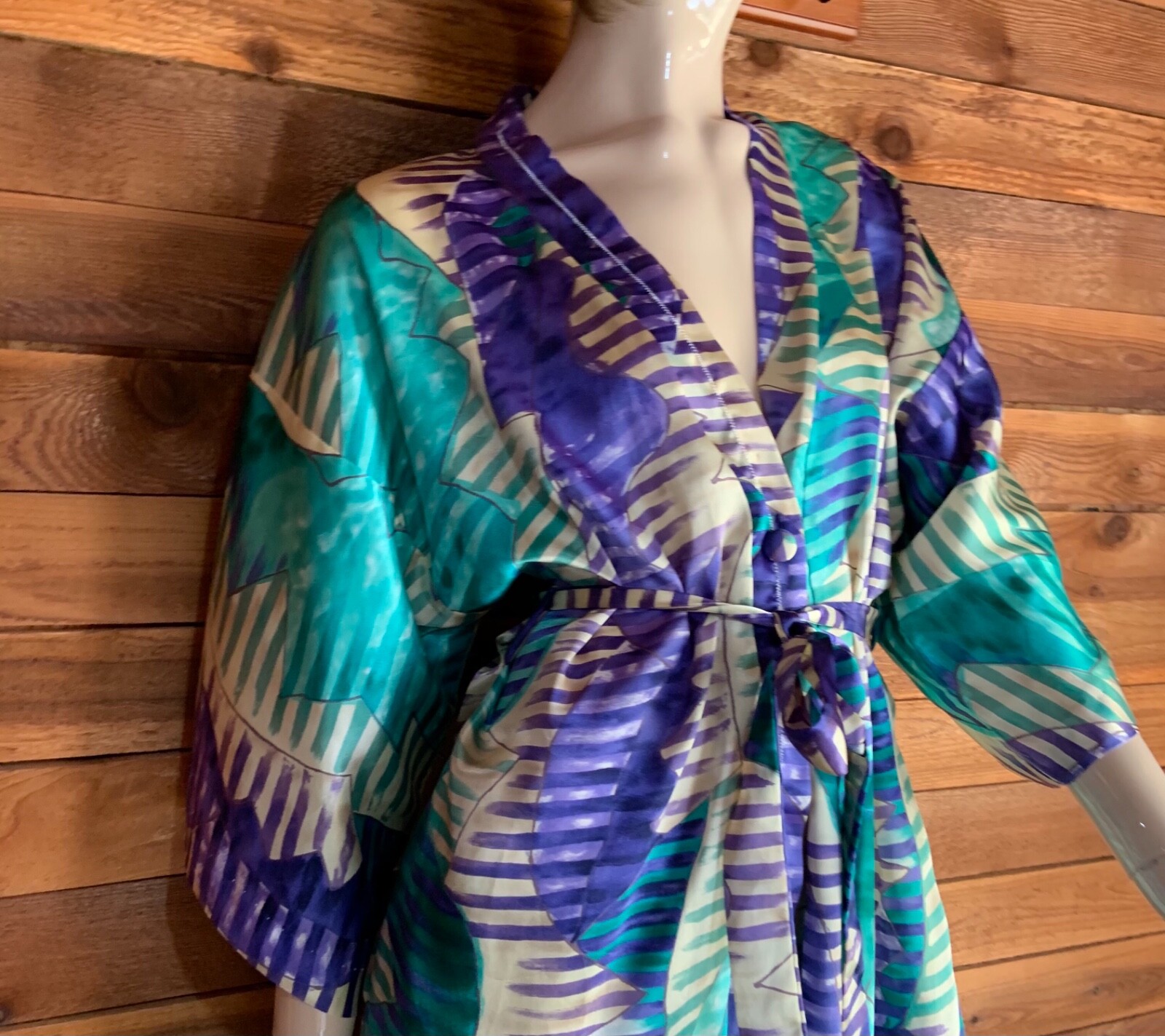 VINTAGE GREEN PURPLE IVORY SATIN SIZE MEDIUM ROBE 11978