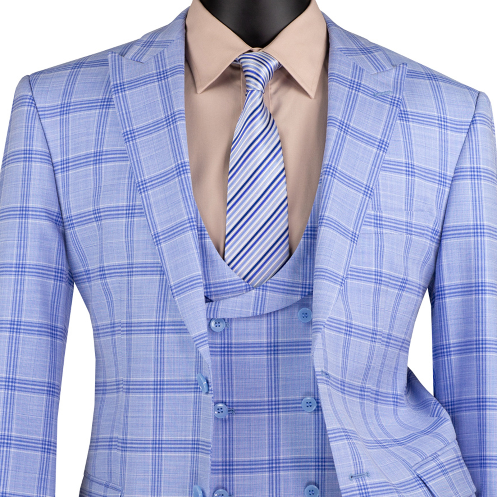 BIG TALL Men's Light Blue Windowpane 3pc Stretch Modern Fit Suit NWT