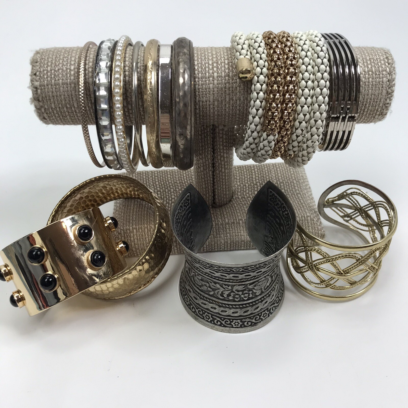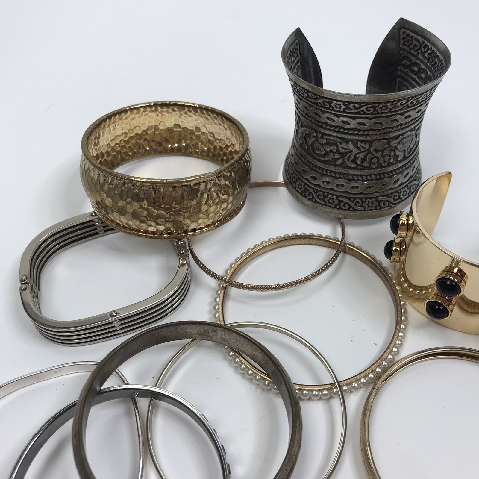 Vintage to Mod Lot Bracelets Bangles Cuffs Mixed Metals Retro Boho Stack