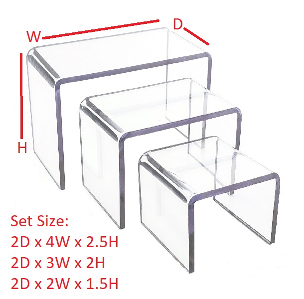 T'z Tagz New 3 Piece Acrylic Showcase Riser Display Stand Color Variation Set