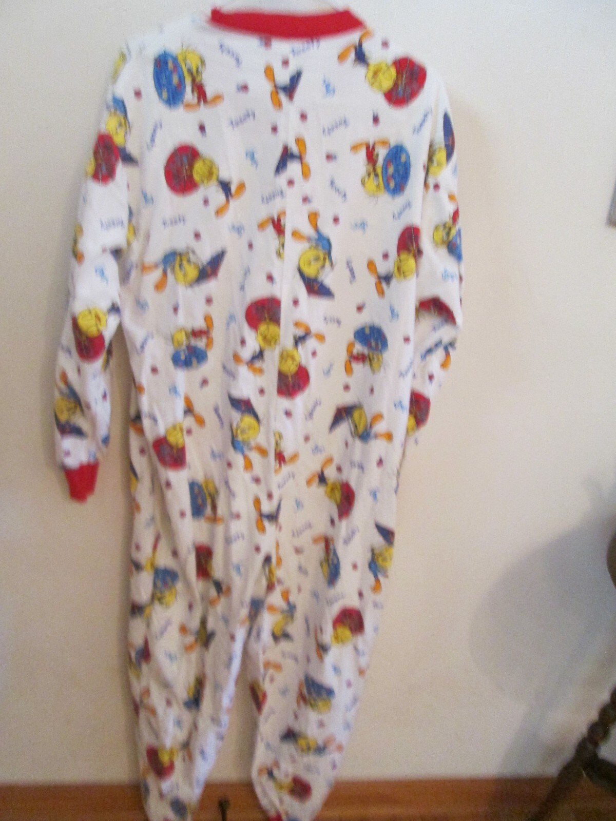 Vintage Flannel One piece Pajamas Tweety Pie Looney Tunes Adult Med.