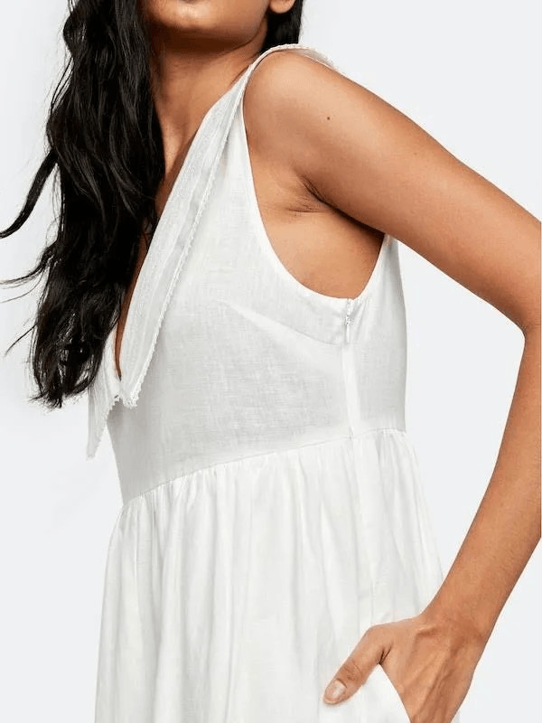 Free People Big Love White Linen Blend Wide Leg Jumpsuit Size Small Boho Beachy