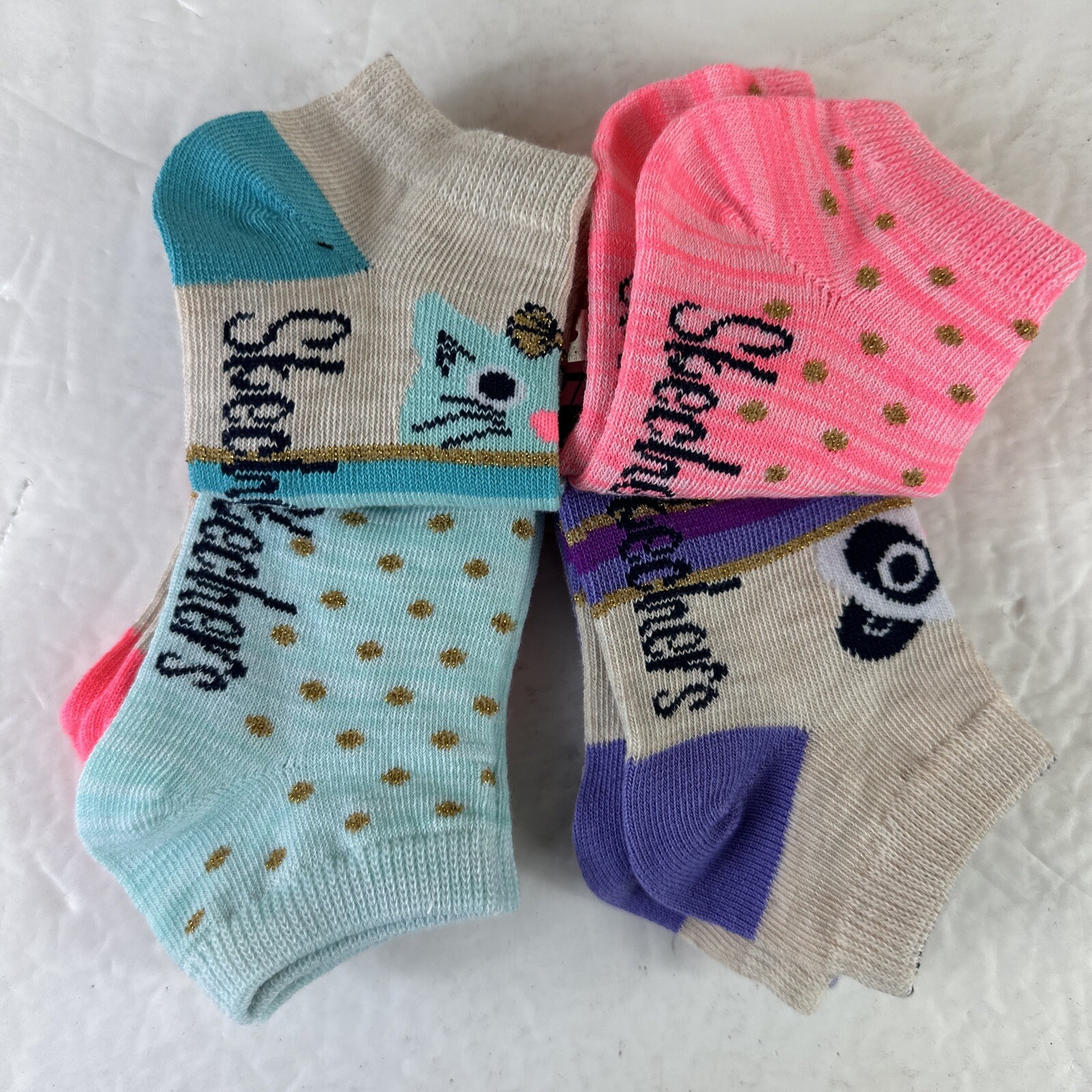 Skechers Girls 6 Pair Low Cut Socks Sz S Shoe Sz 4-8.5 Sock Sz 5-6.5 Multicolor