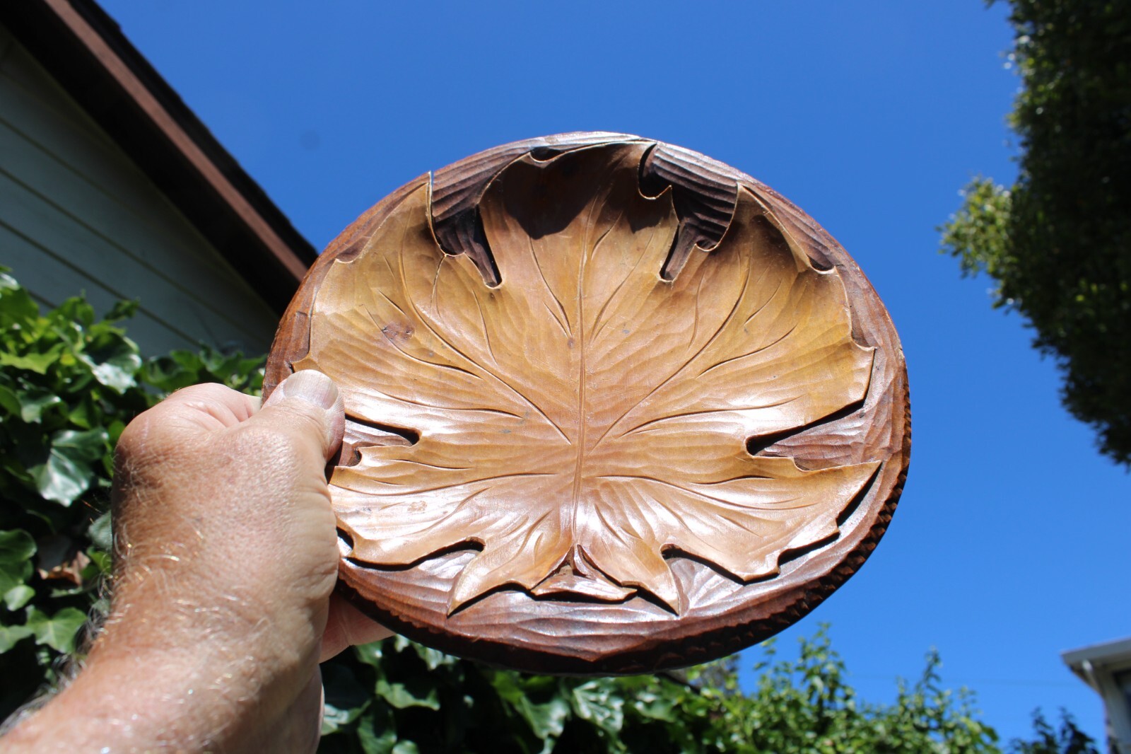 • Vintage Hand Carved Wood Carving Maple Leaf Round Plate Wall Hanging Decor