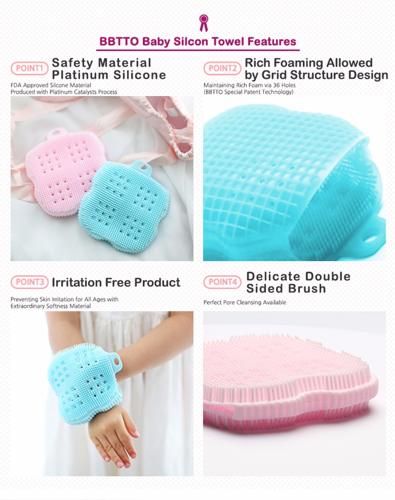 InfantCo Premium Anti-bacterial FDA-approved Silicone Baby Bath Ultra-Soft Towel