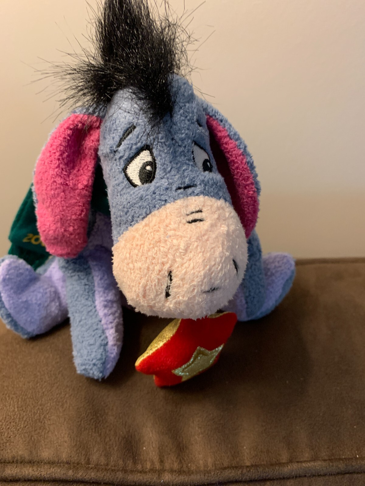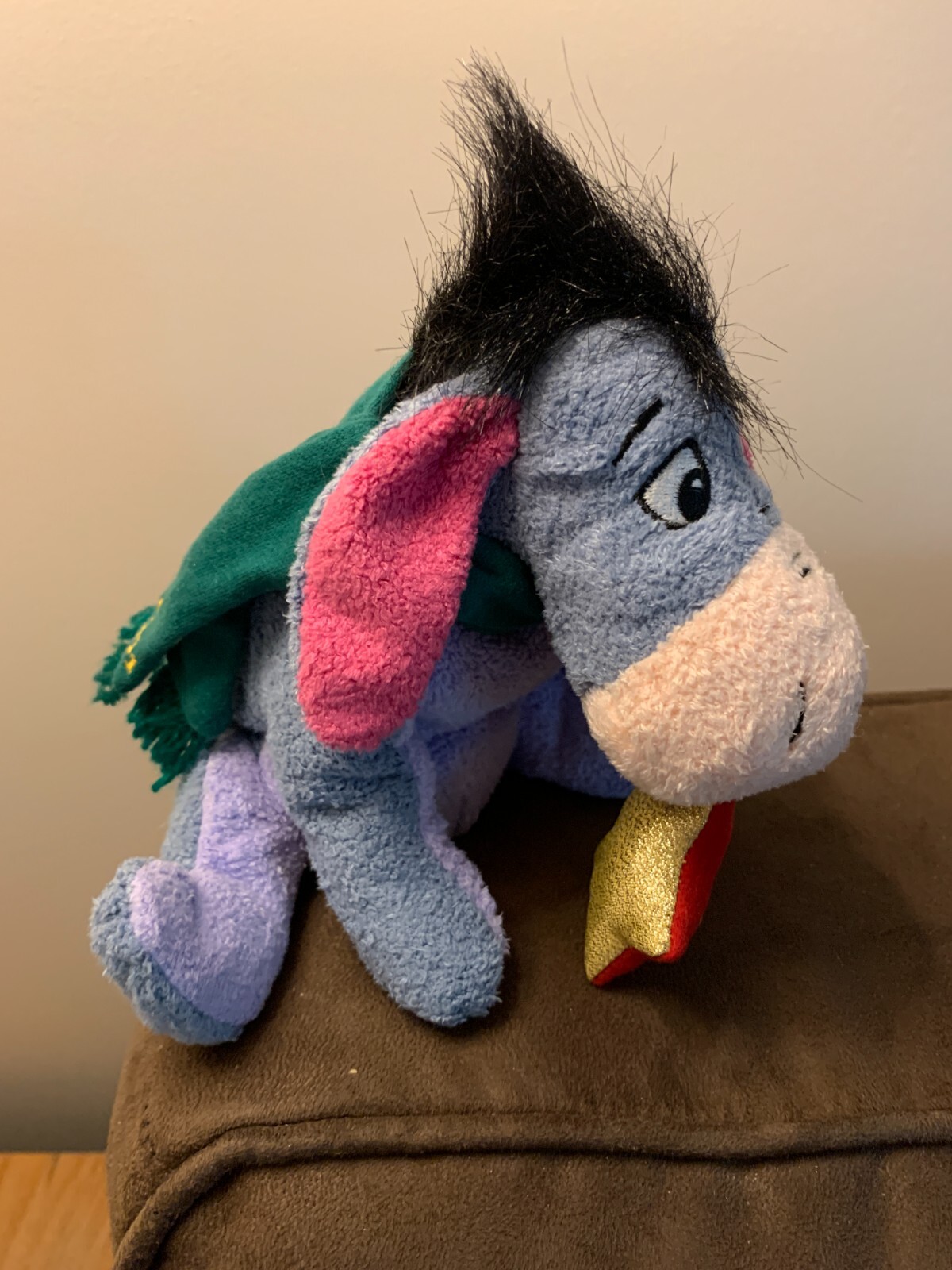 Disney Eeyore Beanbag Plush Winnie the Pooh Plush EEYORE w/star green scarf 2001