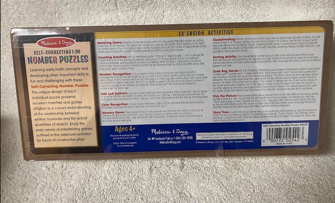 Melissa Doug Self-Correcting Wooden Number Puzzles With Storage Box 40 pcs NIB