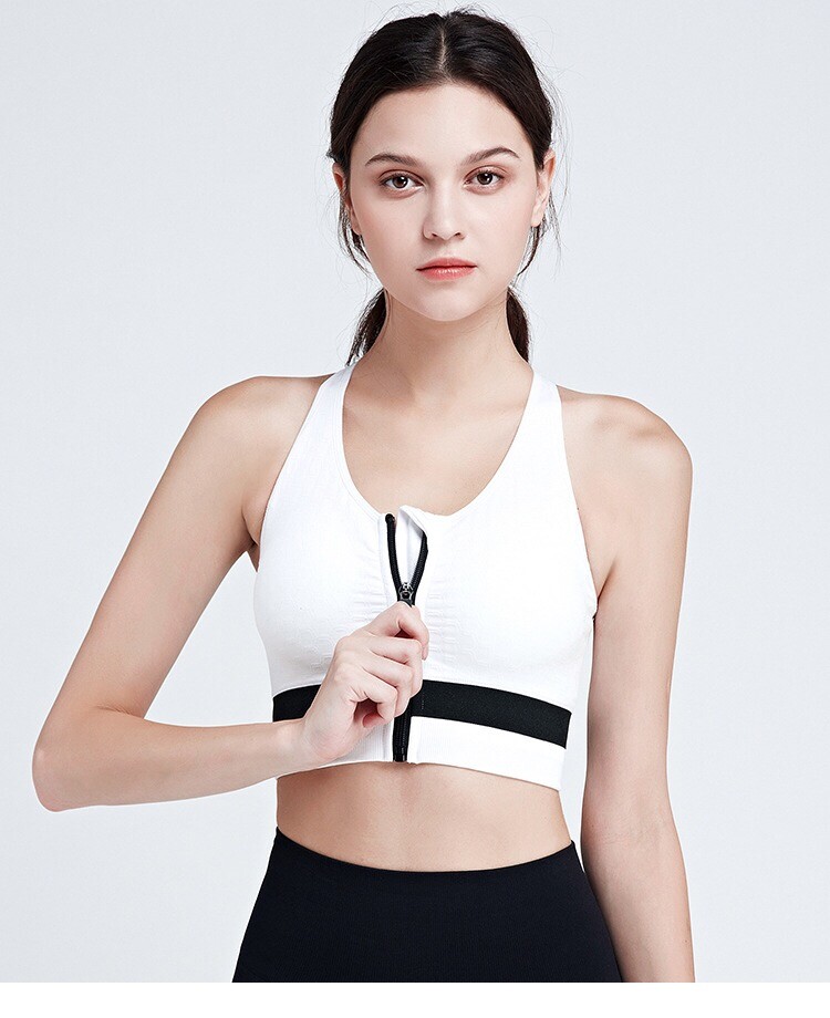 Women's High Impact Cross Back Support Zip Front Sports Bra Racerback Yoga Bras