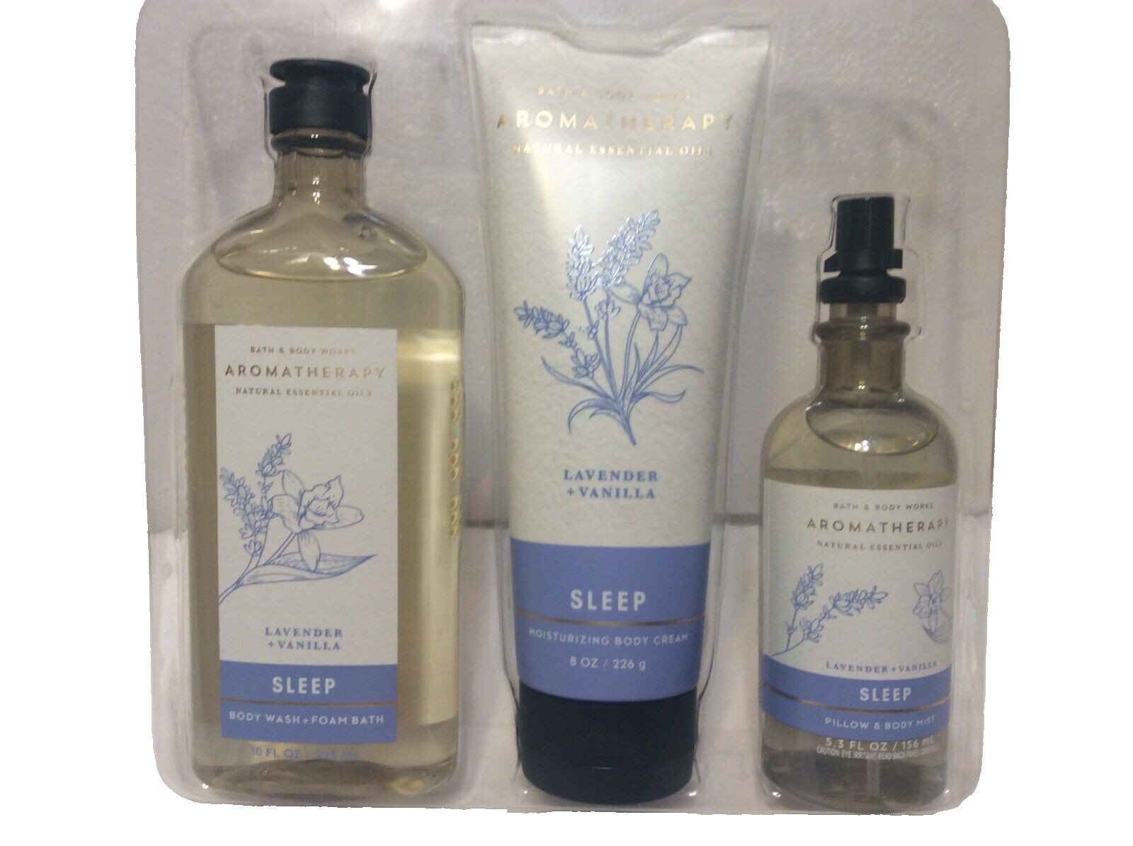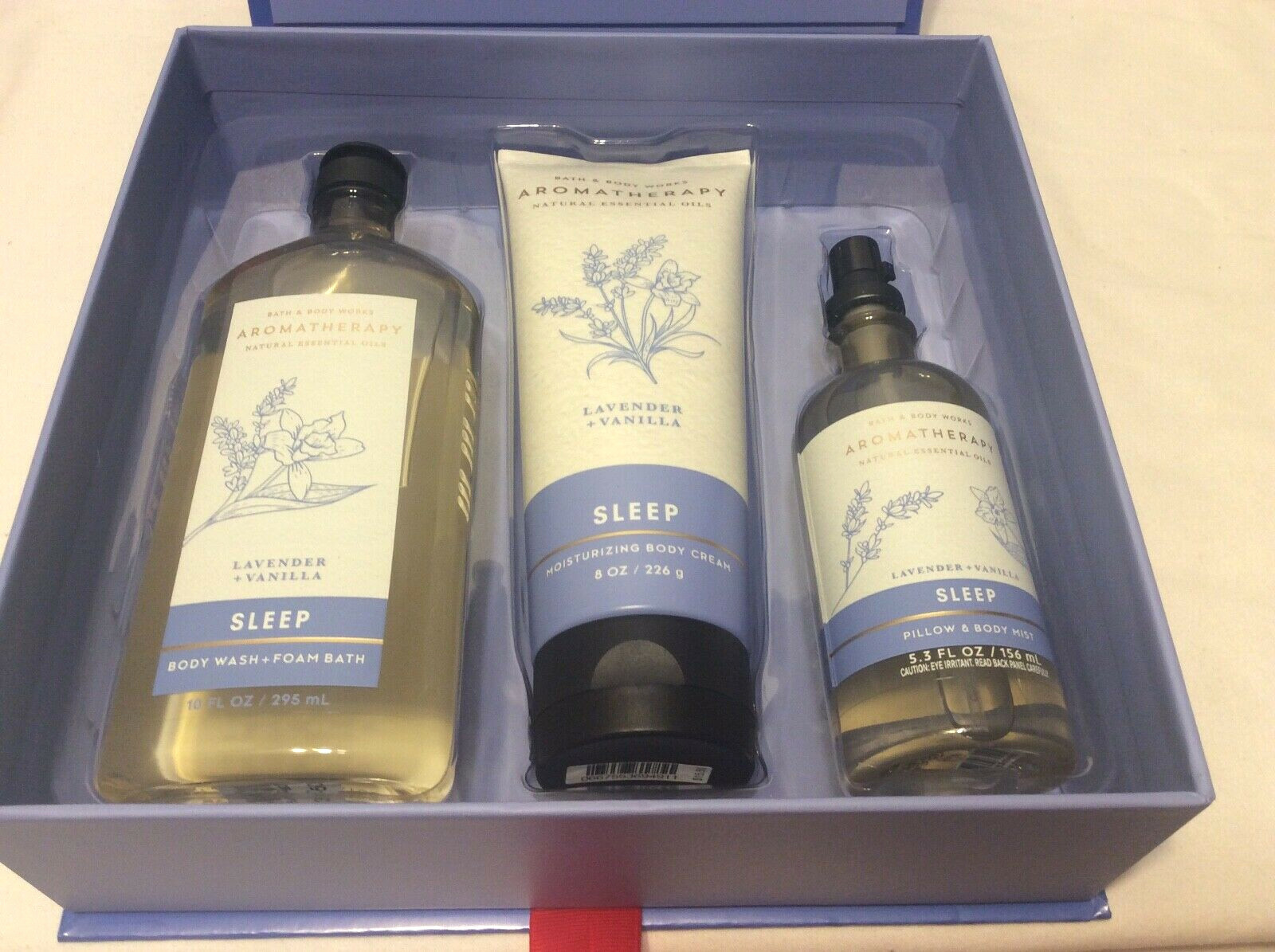 3 pc Bath Body Works Aromatherapy Sleep Relax Lavender Vanilla Gift Box FreeShip