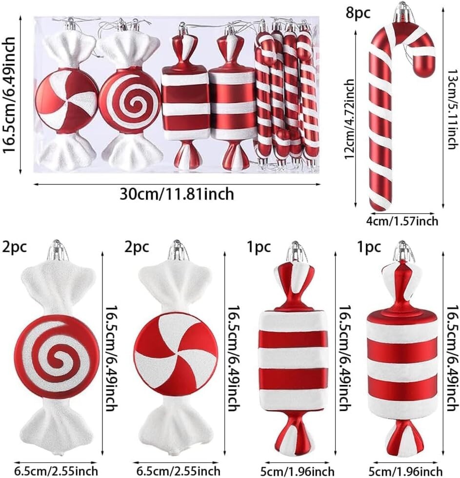 Christmas Tree Decorations 14 Pcs Candy Cane Christmas Tree Ornaments 6inch Red