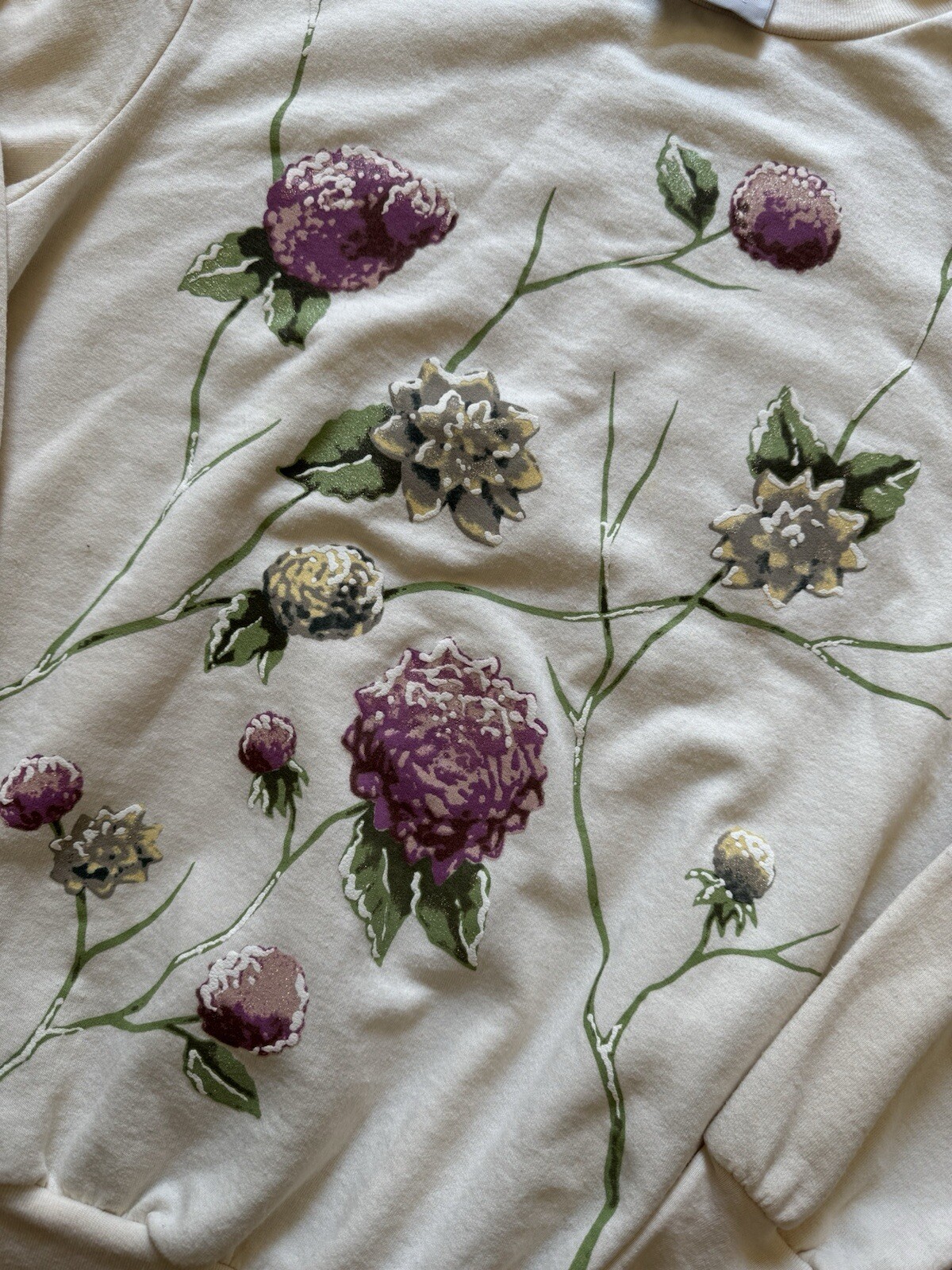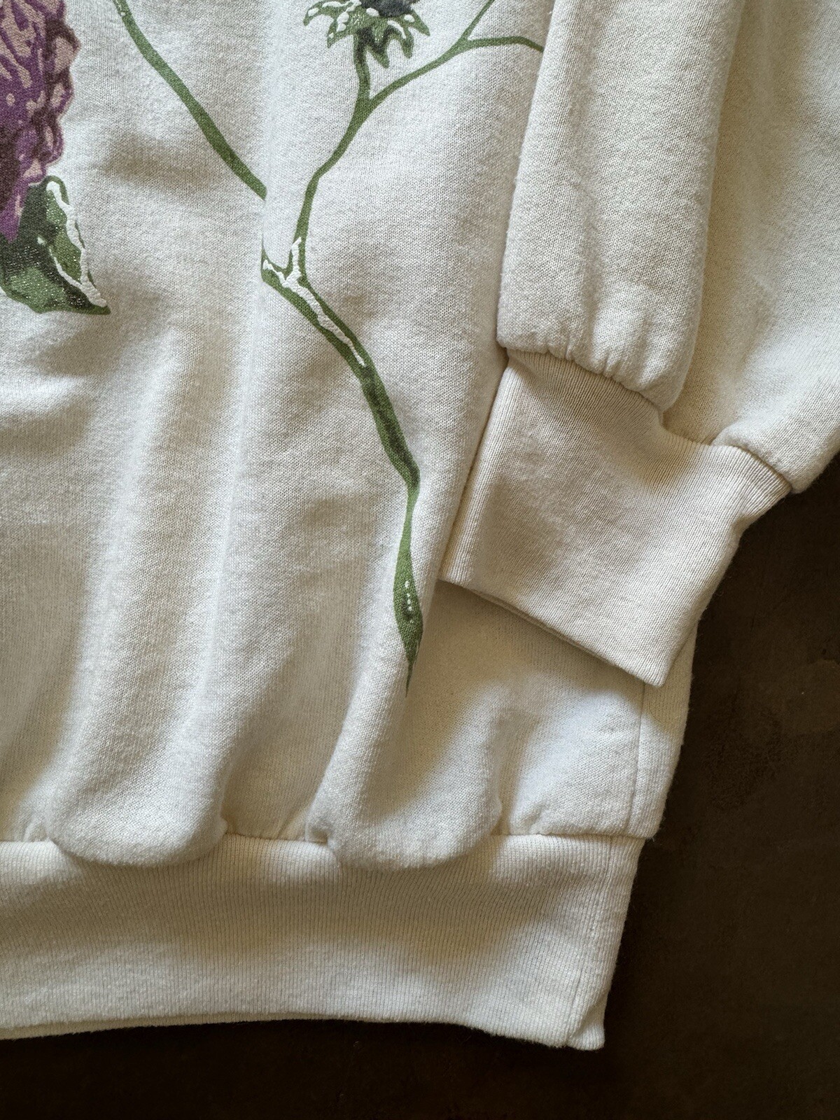 Vintage Floral Flower Crewneck Blair Pullover Sweatshirt Size Small White