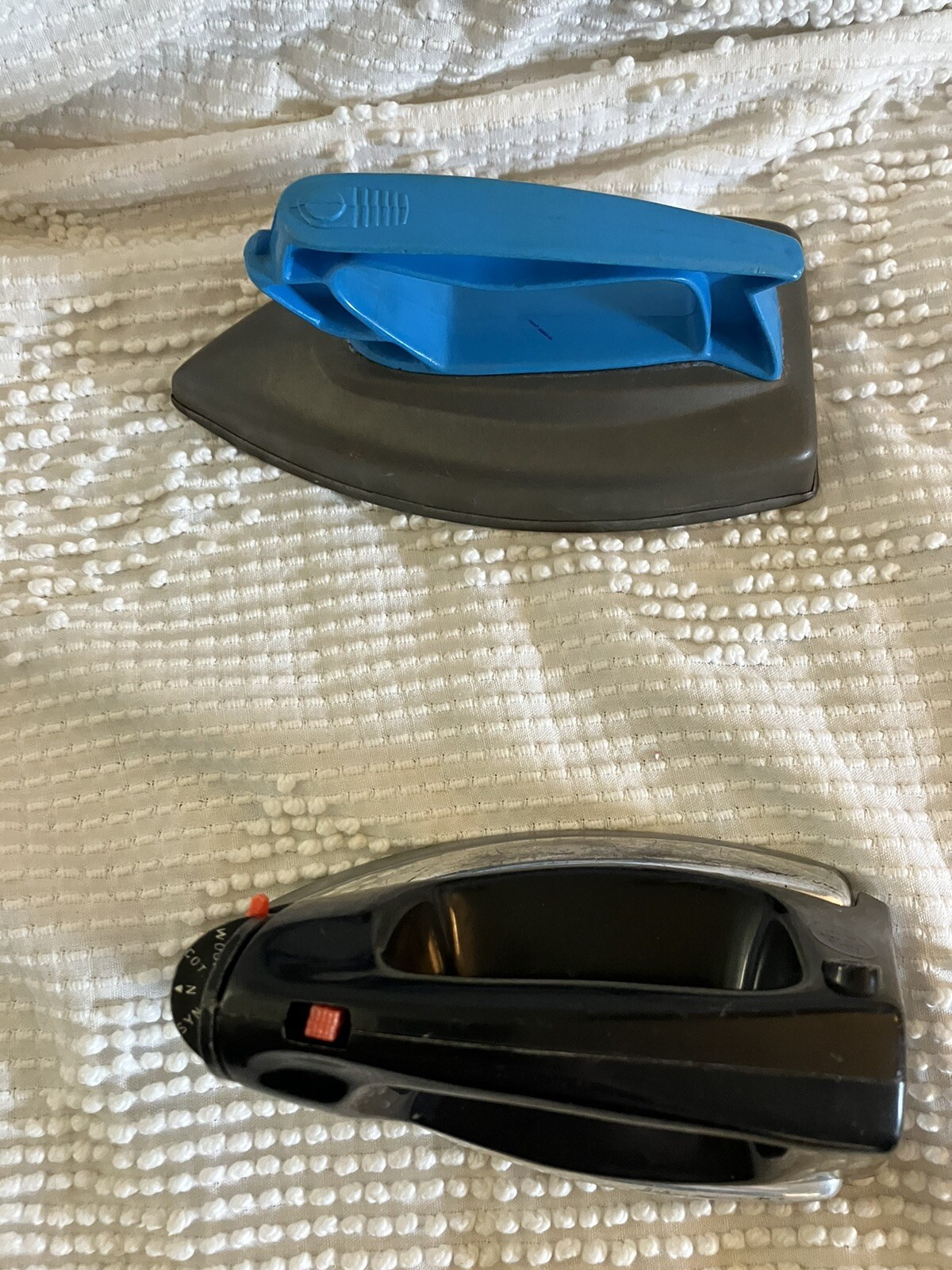 Lot of 2 vintage Toy Children's Irons-plastic/tin-Wolverine