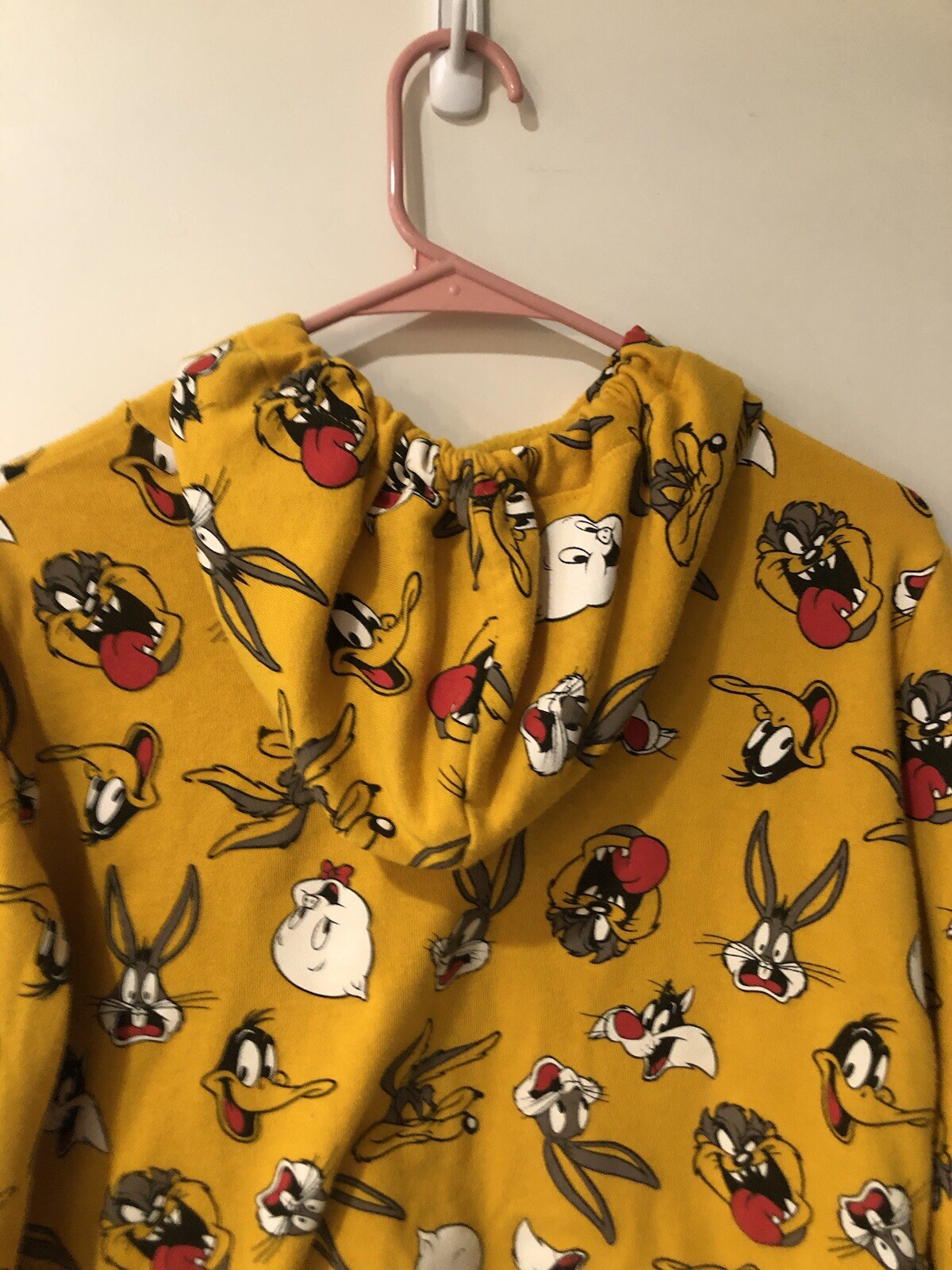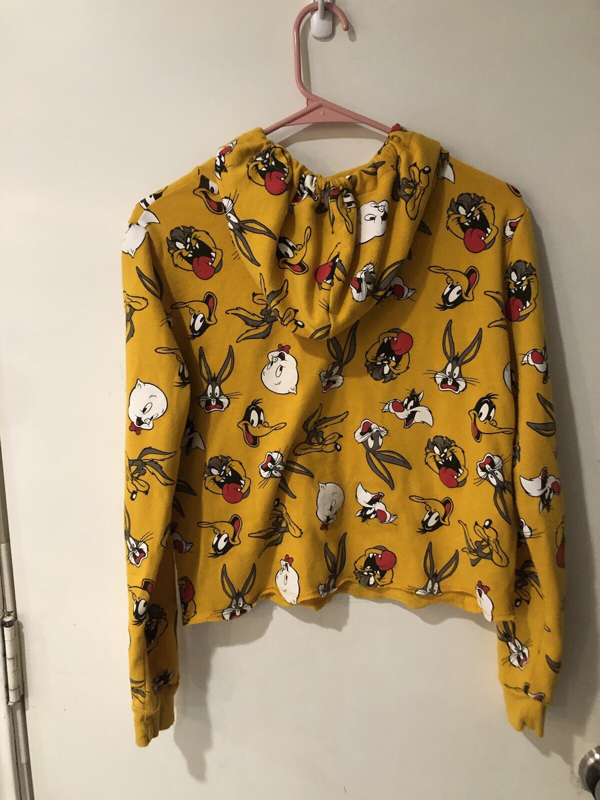 как выглядит Looney Tunes Womens Size xs Cropped Hoodie Mustard Sweatshirt Yellow Bugs Taz фото