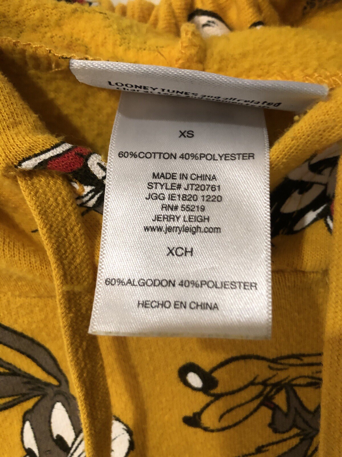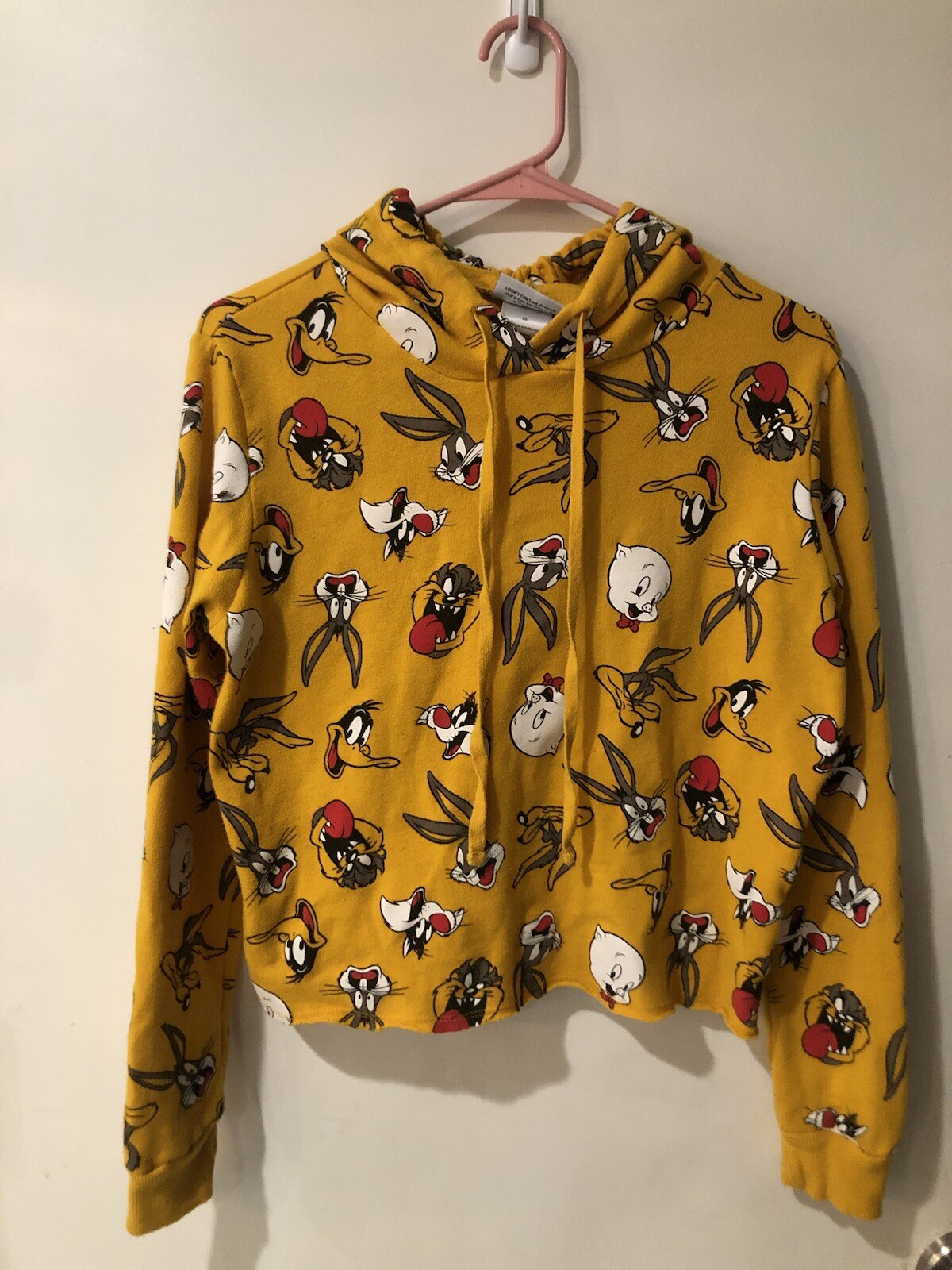 Looney Tunes Womens Size xs Cropped Hoodie Mustard Sweatshirt Yellow Bugs Taz