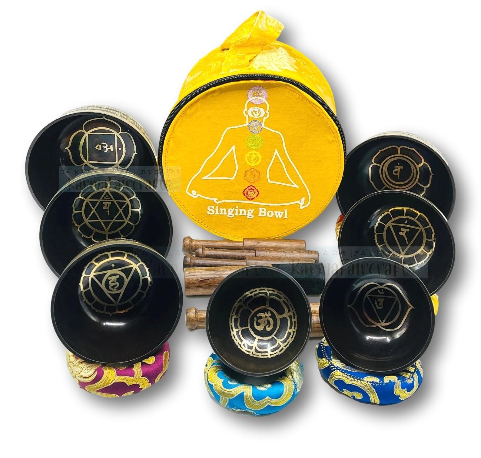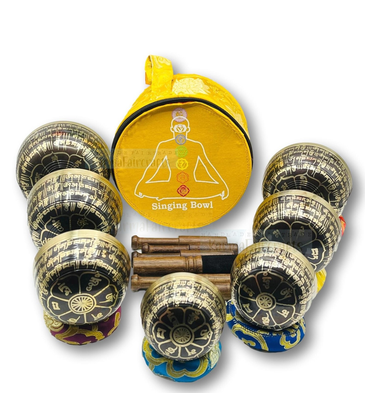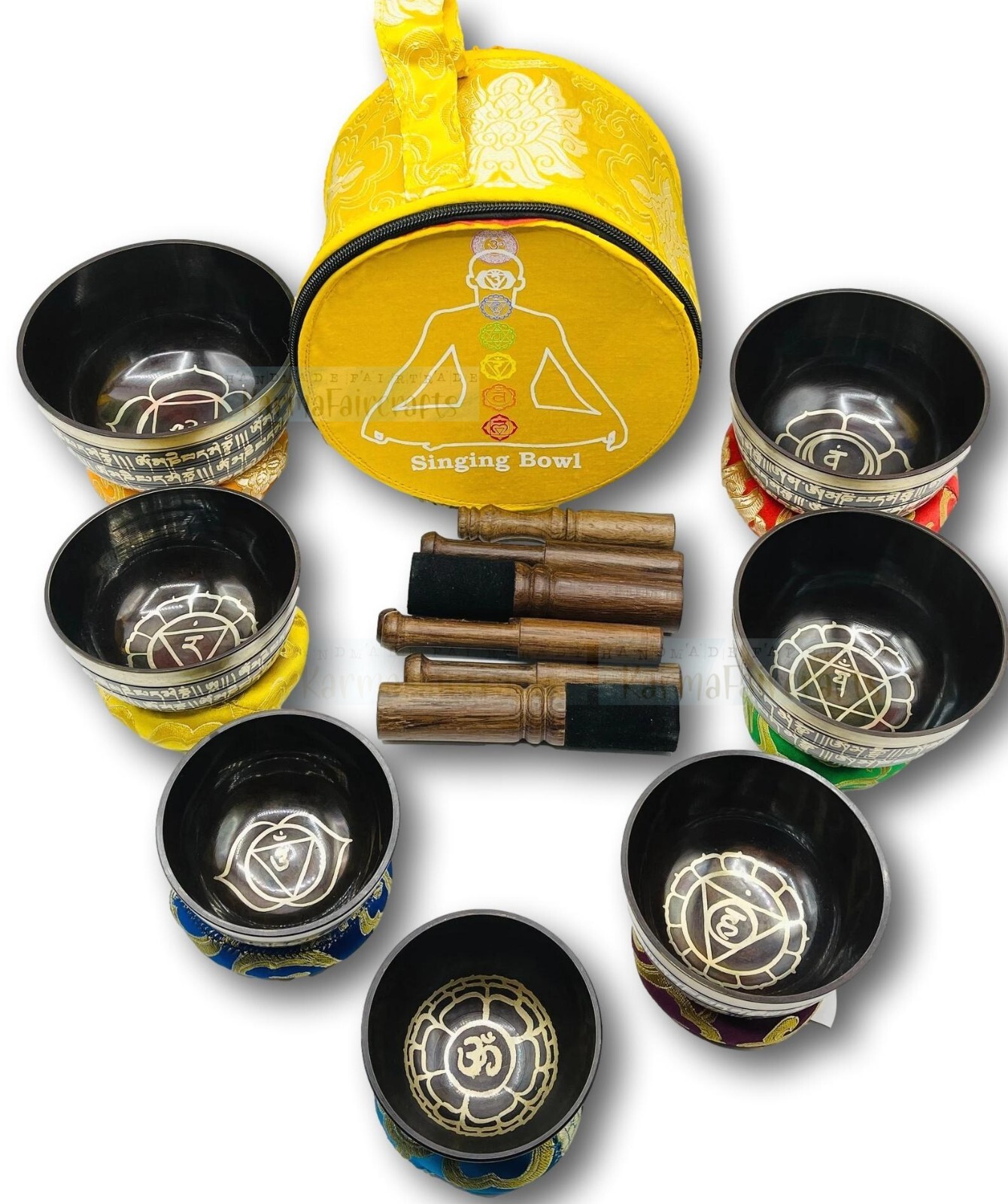 Tibetan Healing Singing Bowl Set of 7 Chakra Colored Sound Meditation Bowl.