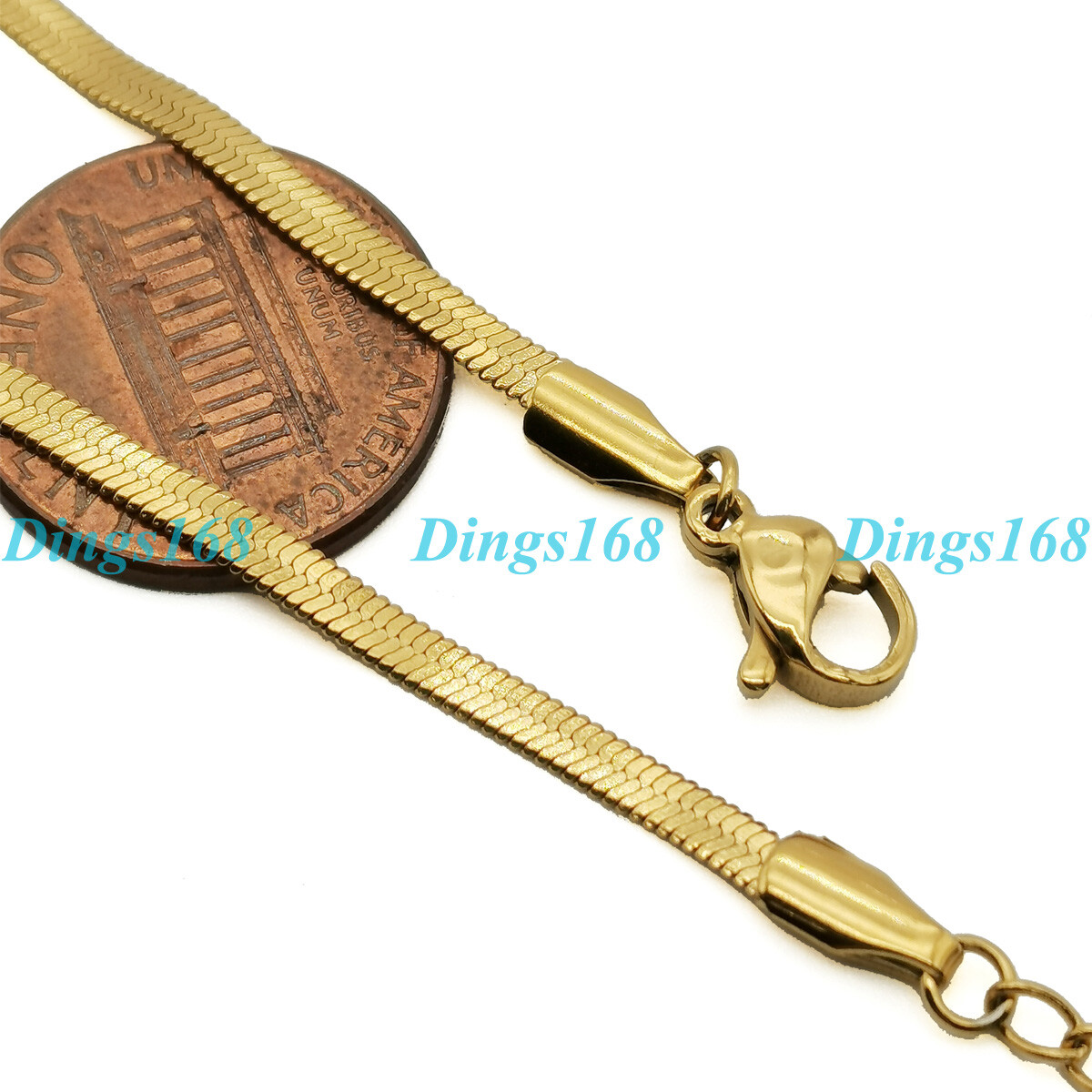 Solid 18K Gold Filled Tarnish-Resist 3mm Wide Herringbone Chain Bracelet C5C A