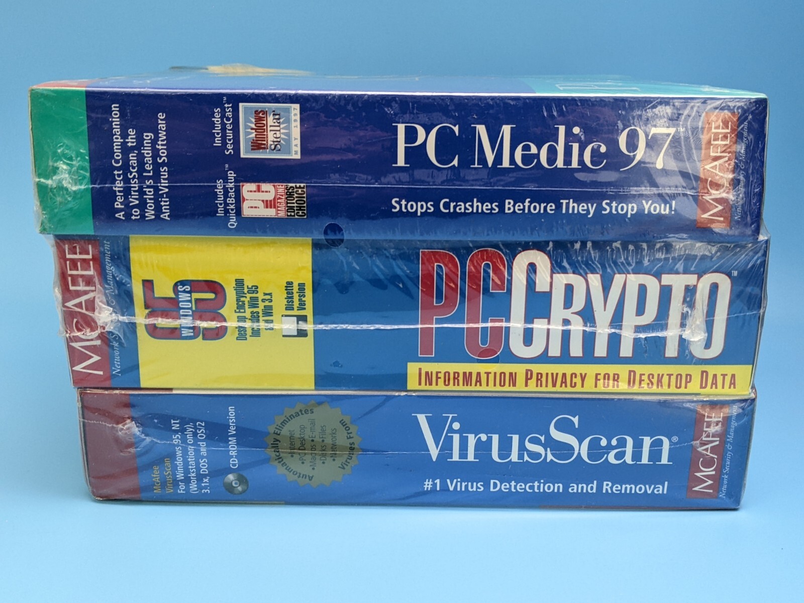 McAfee 3 Pack VirusScan, PC Crypto, PC Medic 97: CD 3.5 Software / VTG 1997 NEW