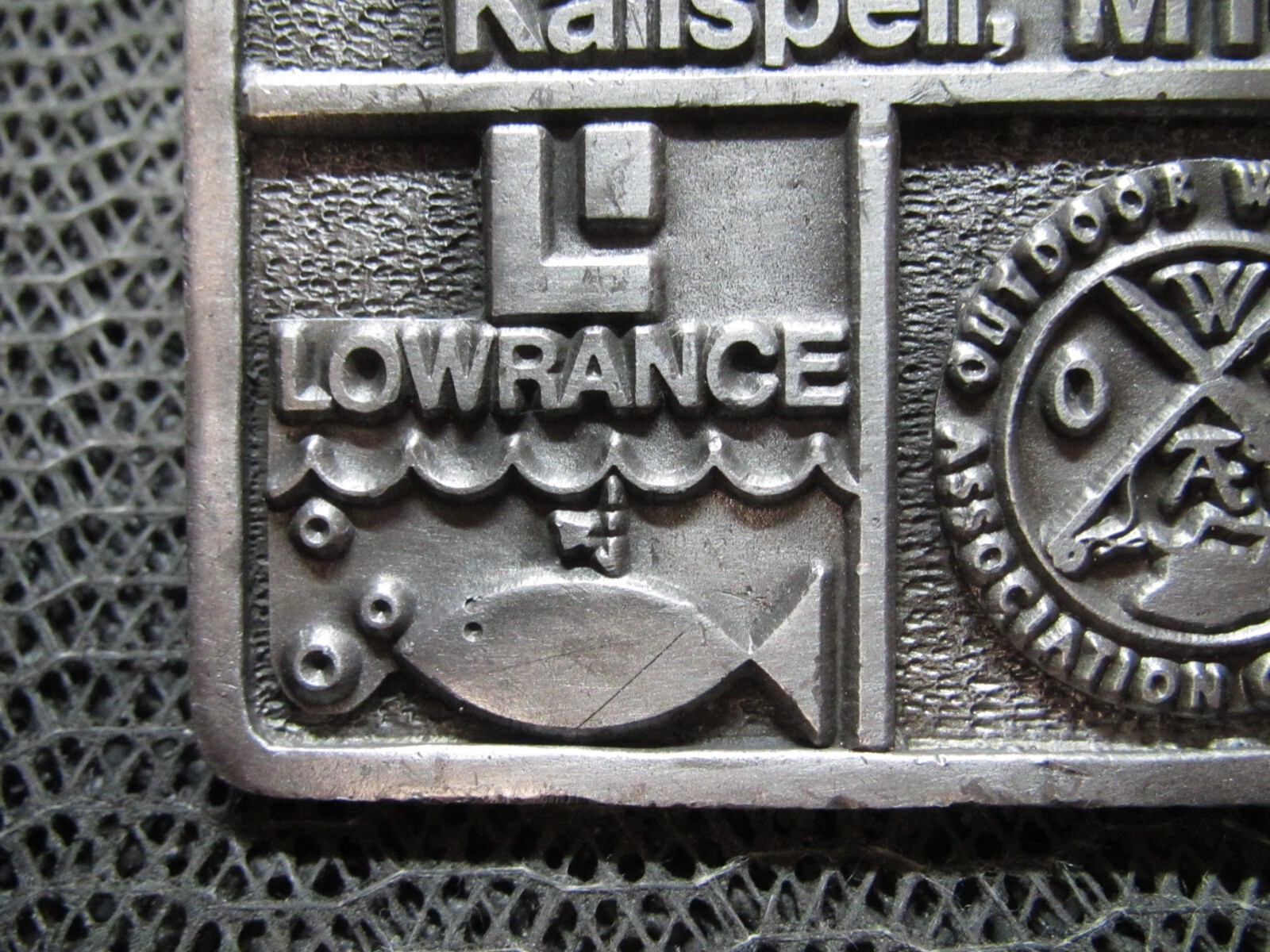 LOWRANCE ELECTRONICS FISH FINDER 1987 KALISPELL, MT BELT BUCKLE VINTAGE RARE