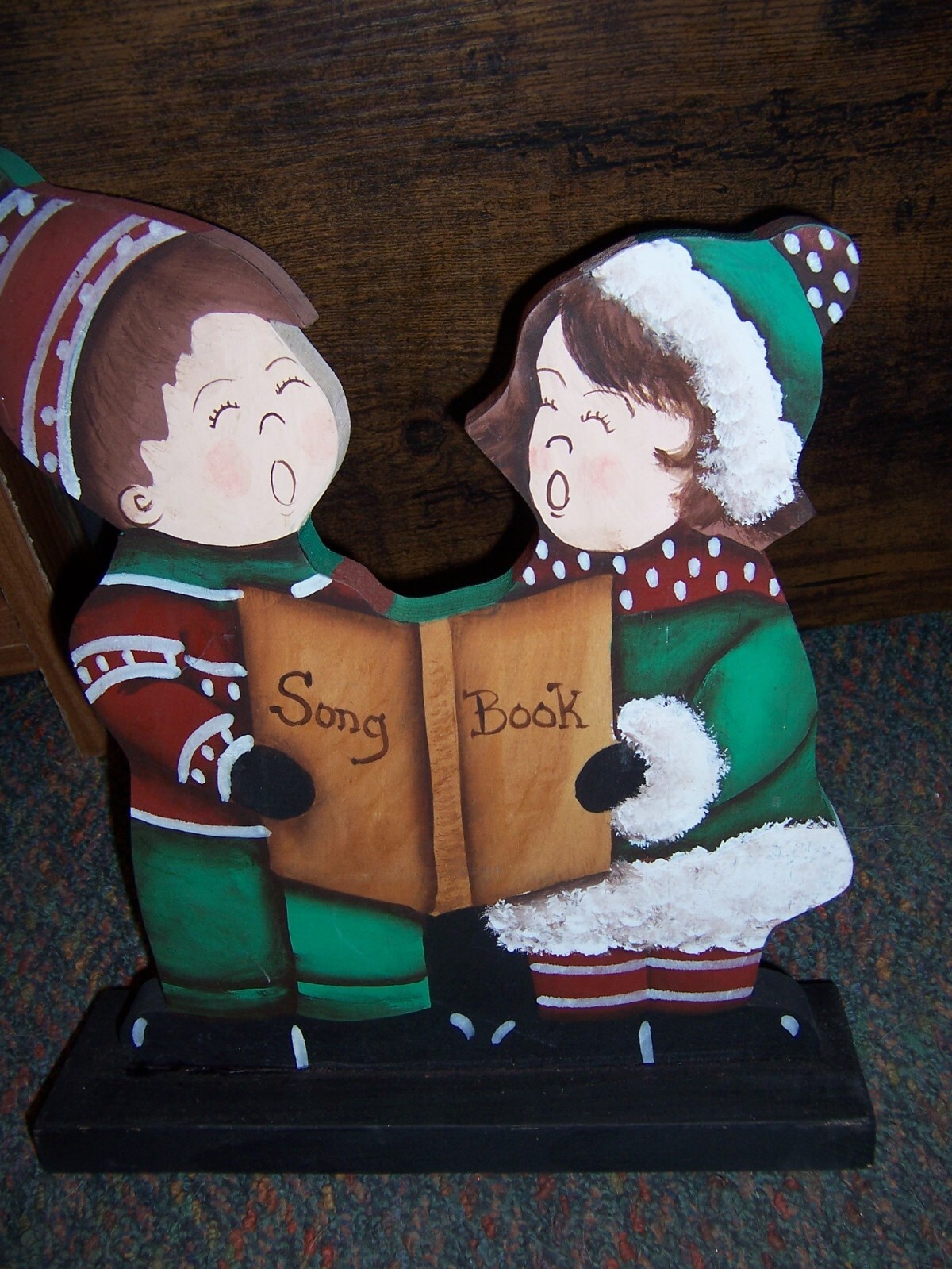 HANDMADE Wooden Standing Boy and Girl Christmas Carolers