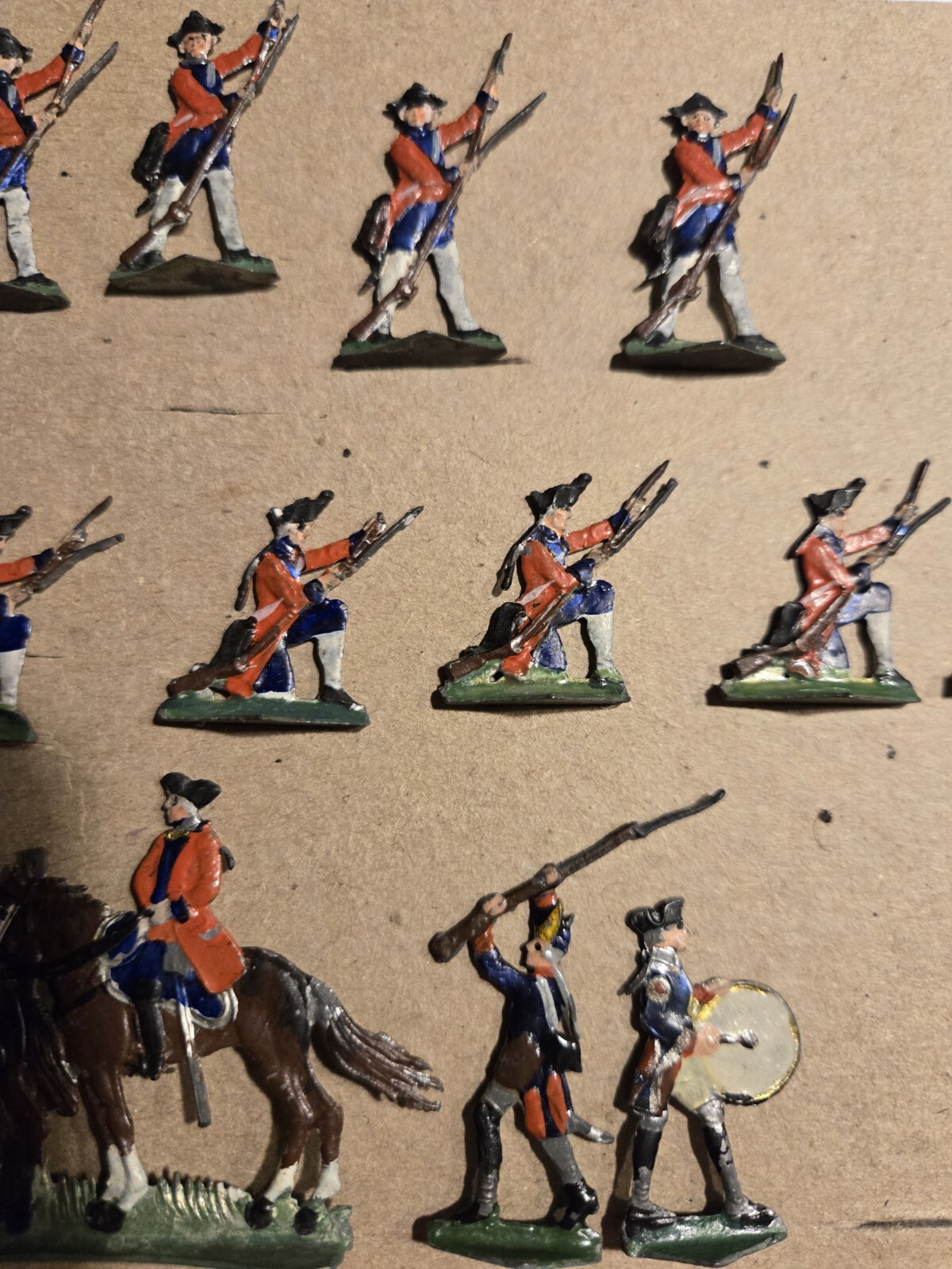 как выглядит Antique Flat Lead British Soldiers Red Coats Lot Of 20 Nicely Hand Painted фото