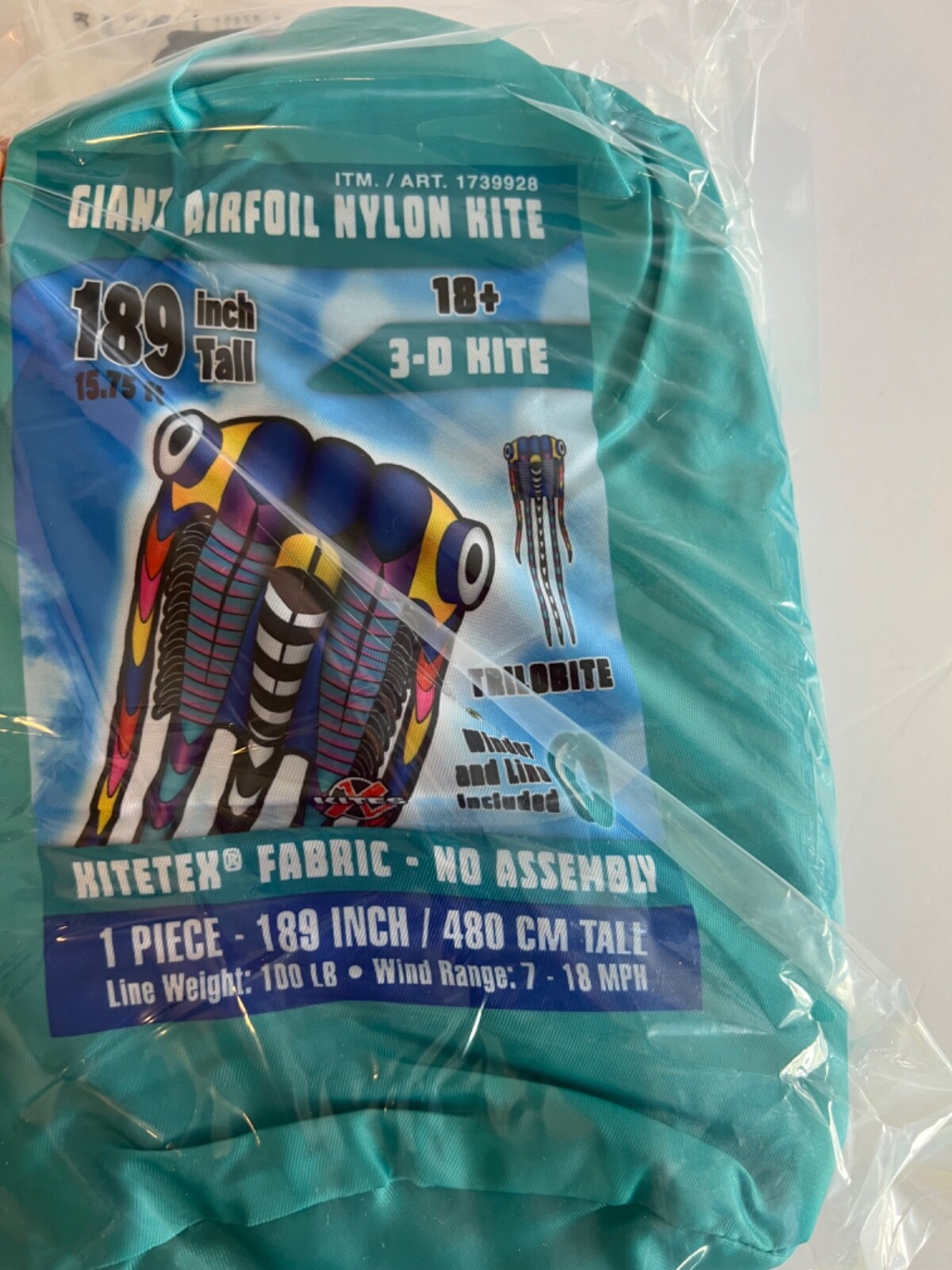 как выглядит GIANT AIRFOIL NYLON TRILOBITE 3D Kite 15.75 ft Tall. NEW SEALED. фото