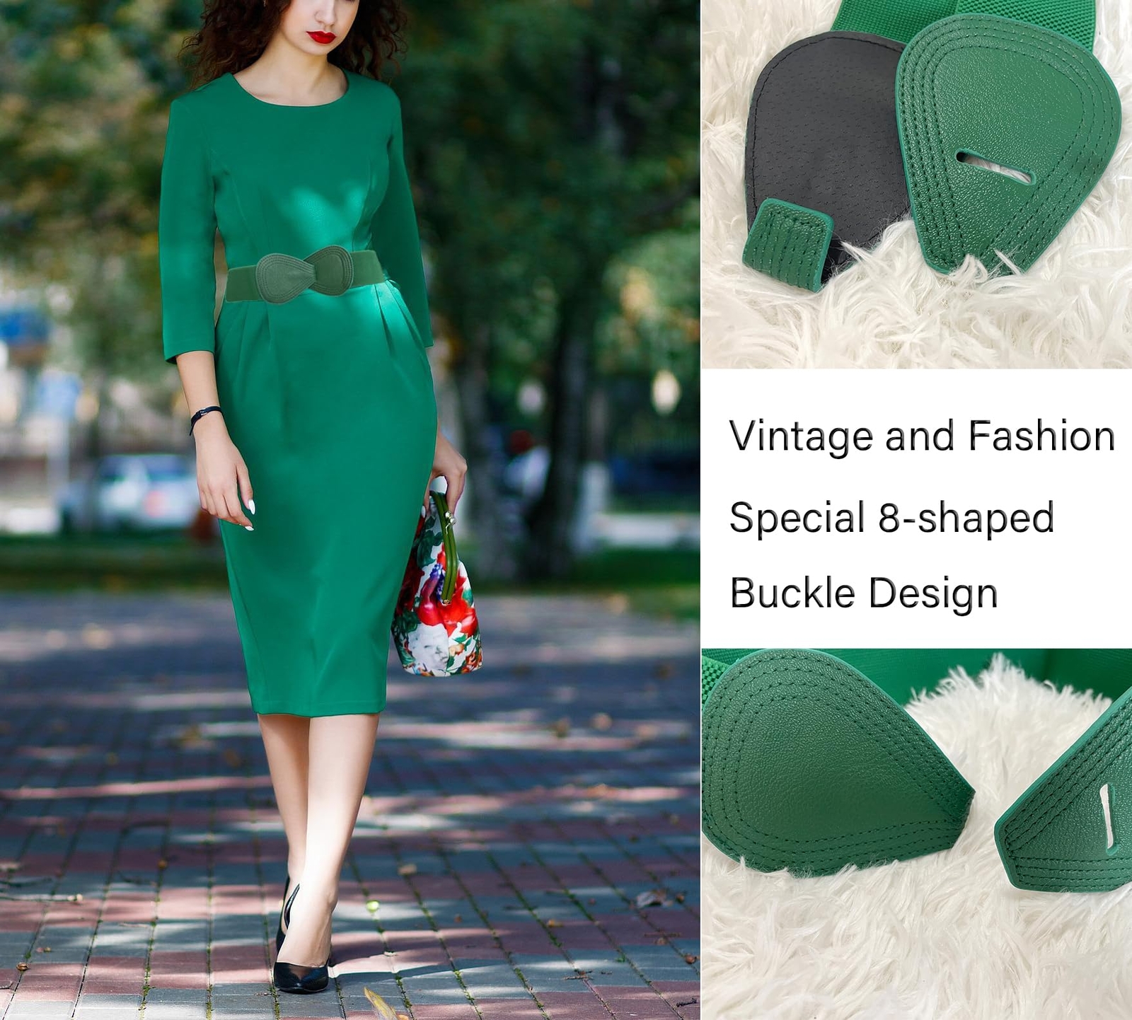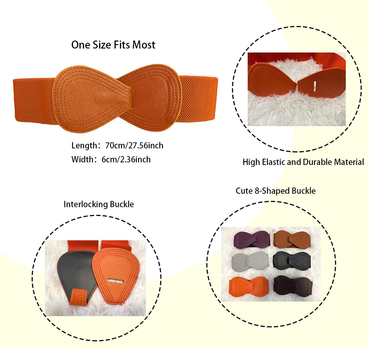 Women 8-Shaped Elastic Belts Stretchy Leather Waistband Wide Stretch Women Dr...