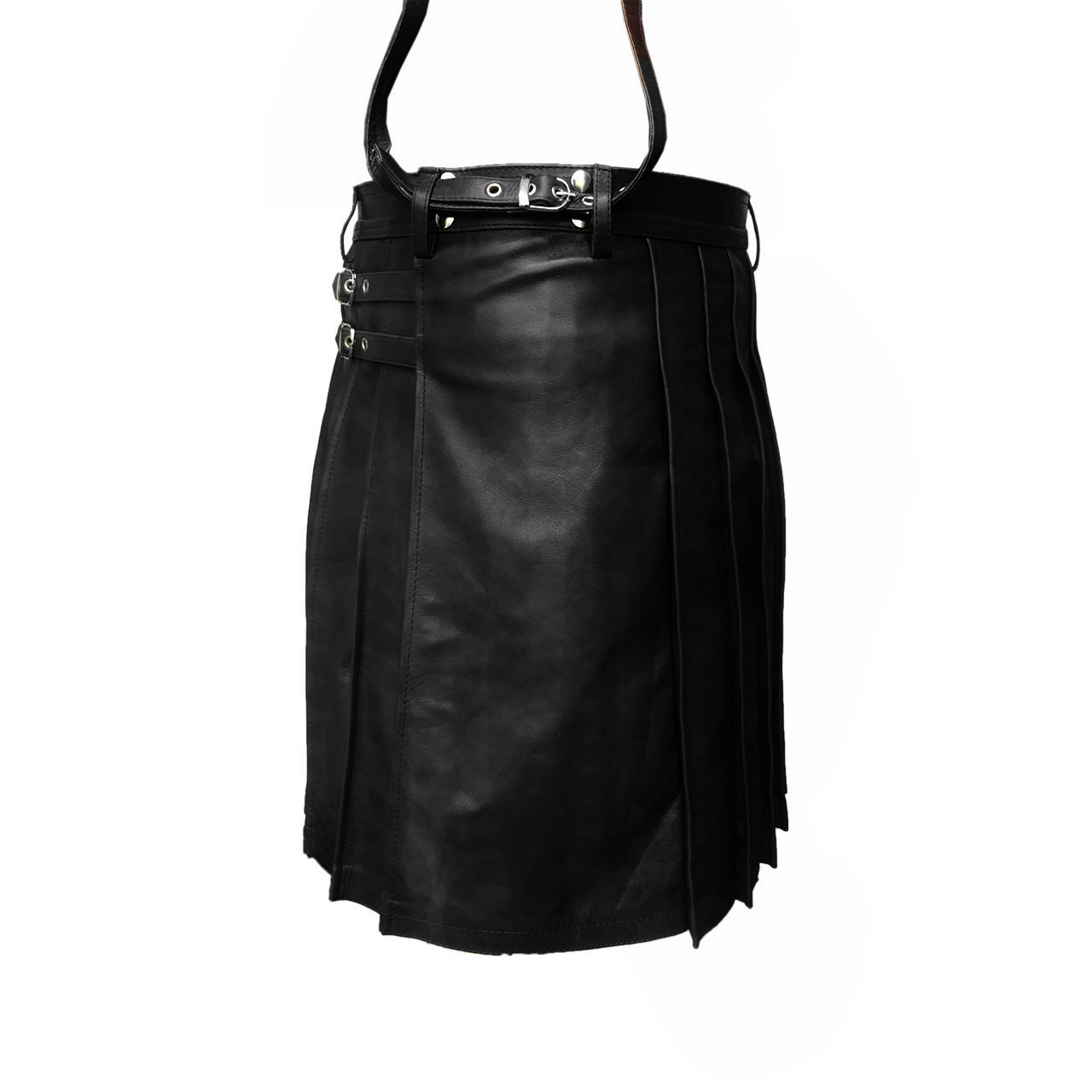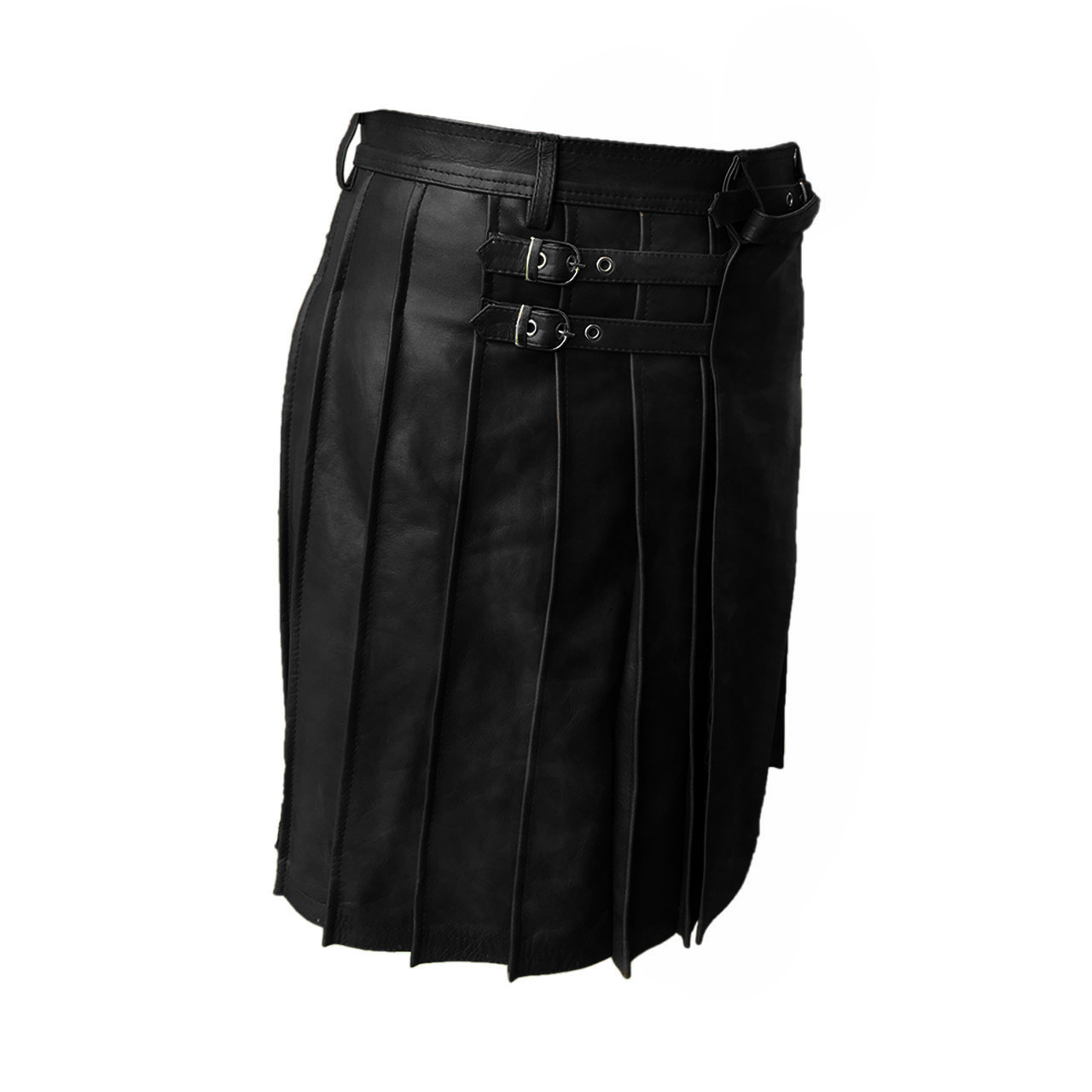 Mens Black premium Leather Quality Kilt - Scottish Gothic Style for Halloween