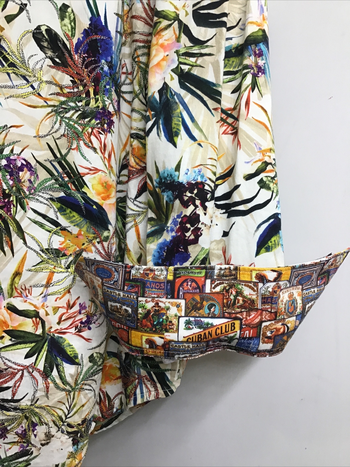 Особенности: All Seasons, Contrasting Trim, Contrasting Print Cuban Club, Embroidery In Front, Rounded Hem, Length And Back 32 Inches