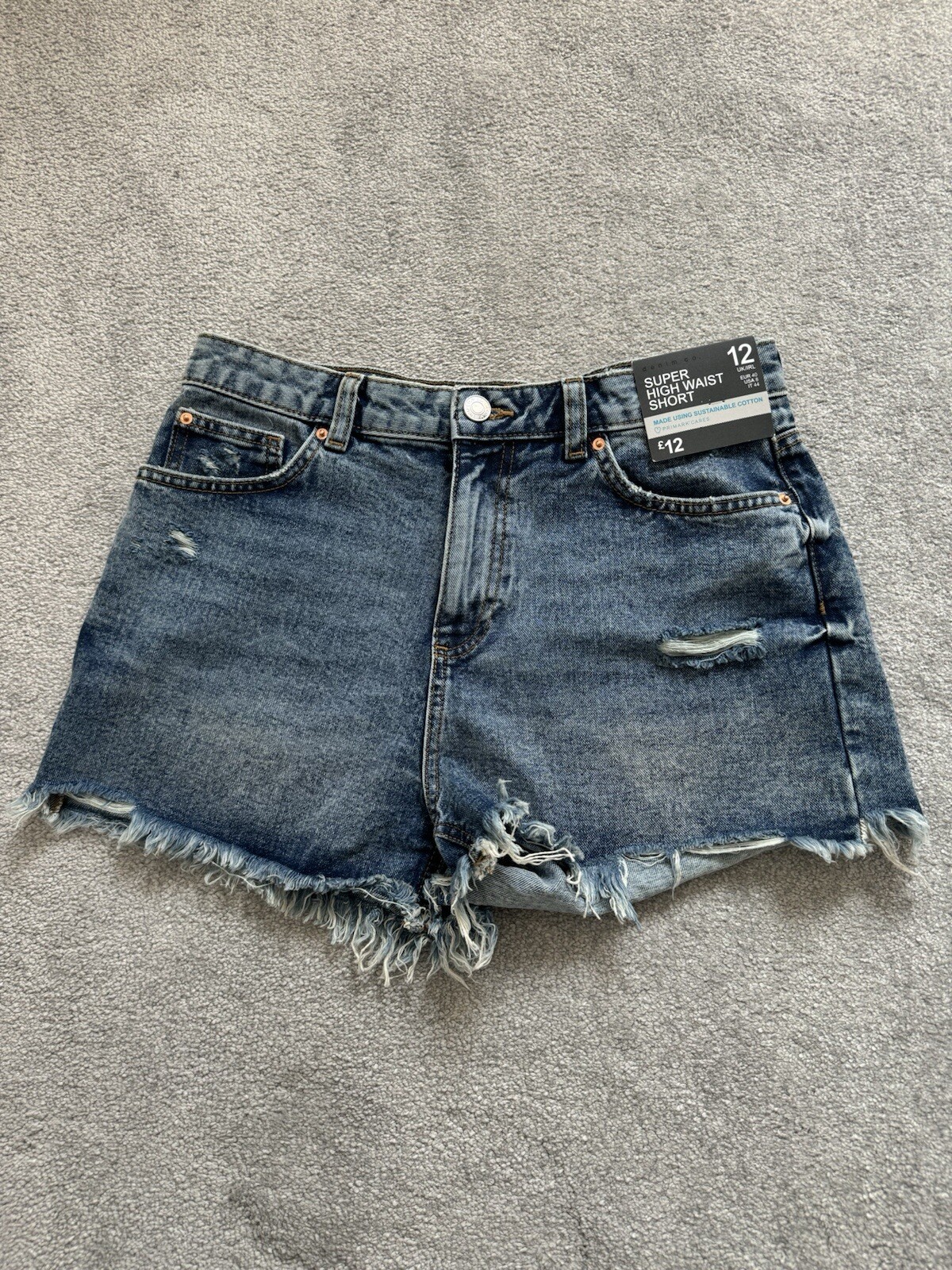 Primark Super Hight Waist Denim Shorts Size 12 New with Tags