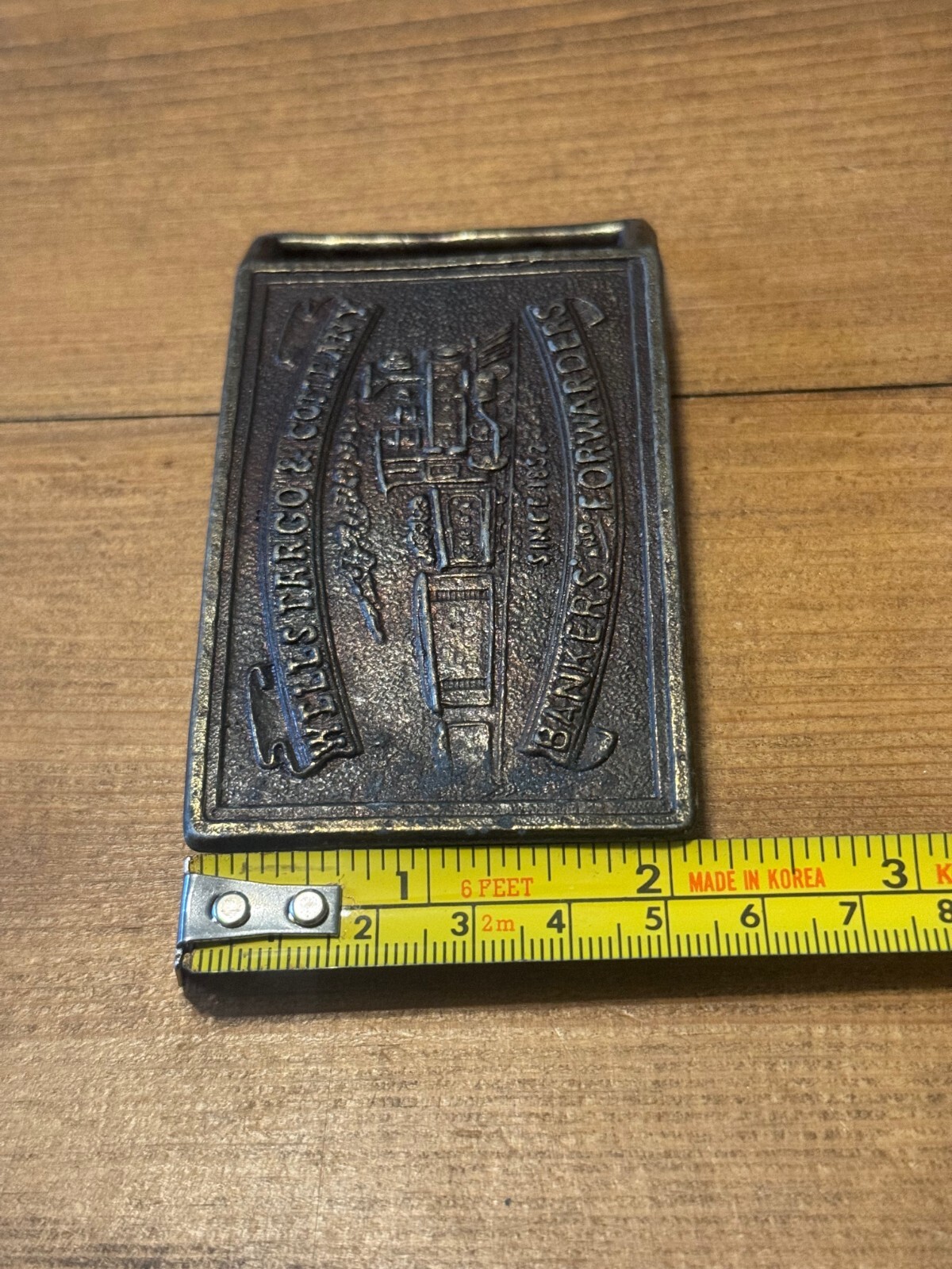 как выглядит Vintage Wells Fargo and Company Bankers and Forwarders Rectangular Belt Buckle фото